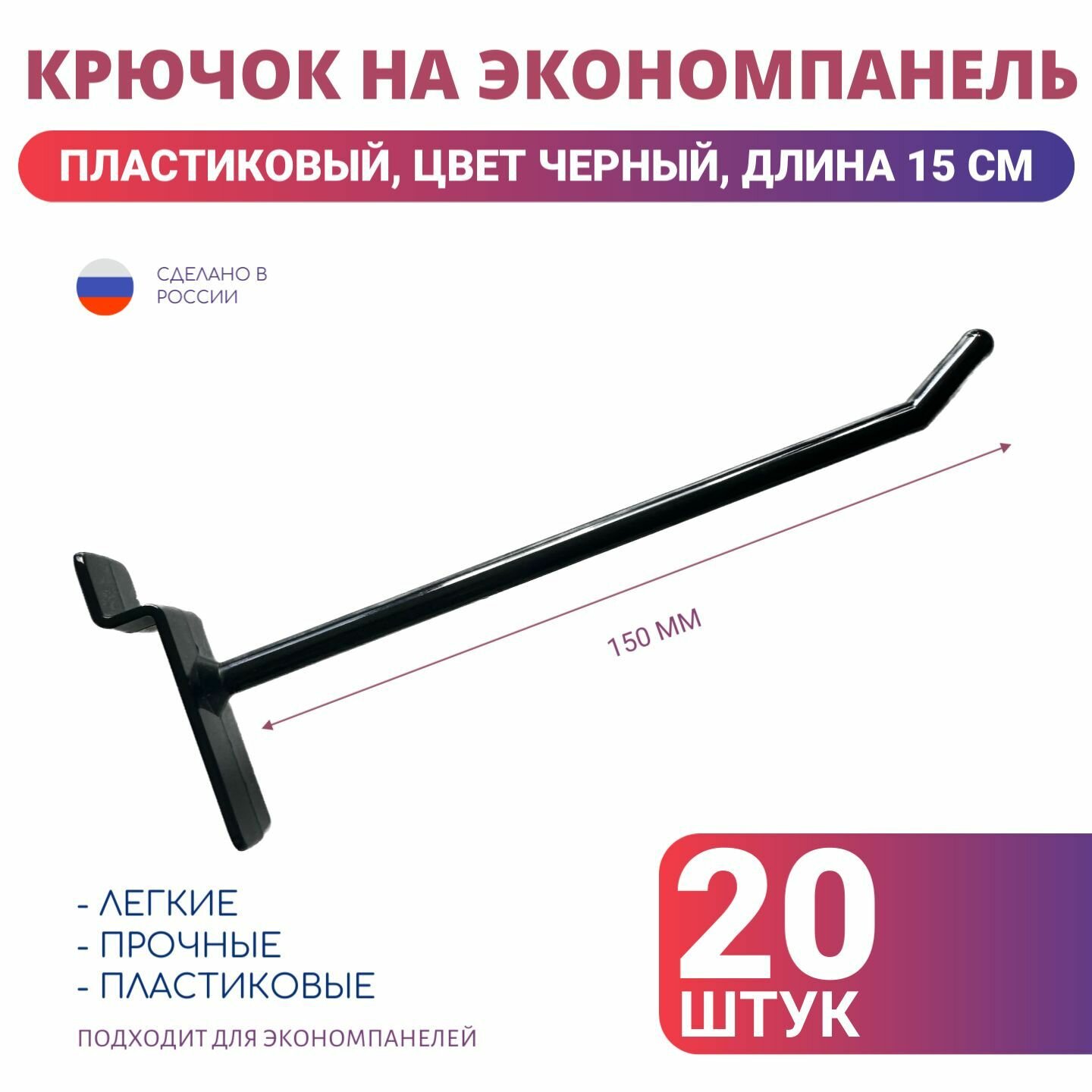 Отзывы на Крючки длина 15 см для экономпанелей пластиковые, 20 шт, черные