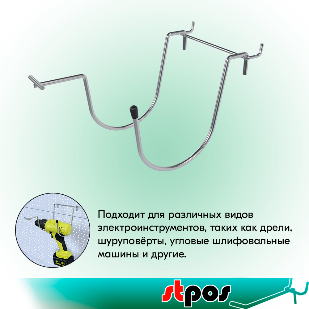 Отзывы на Держатель для ЭЛЕКТРОИНСТРУМЕНТА двойной c ценникодержателем,80/130/90 мм, цинк-хром, d5, шаг 45