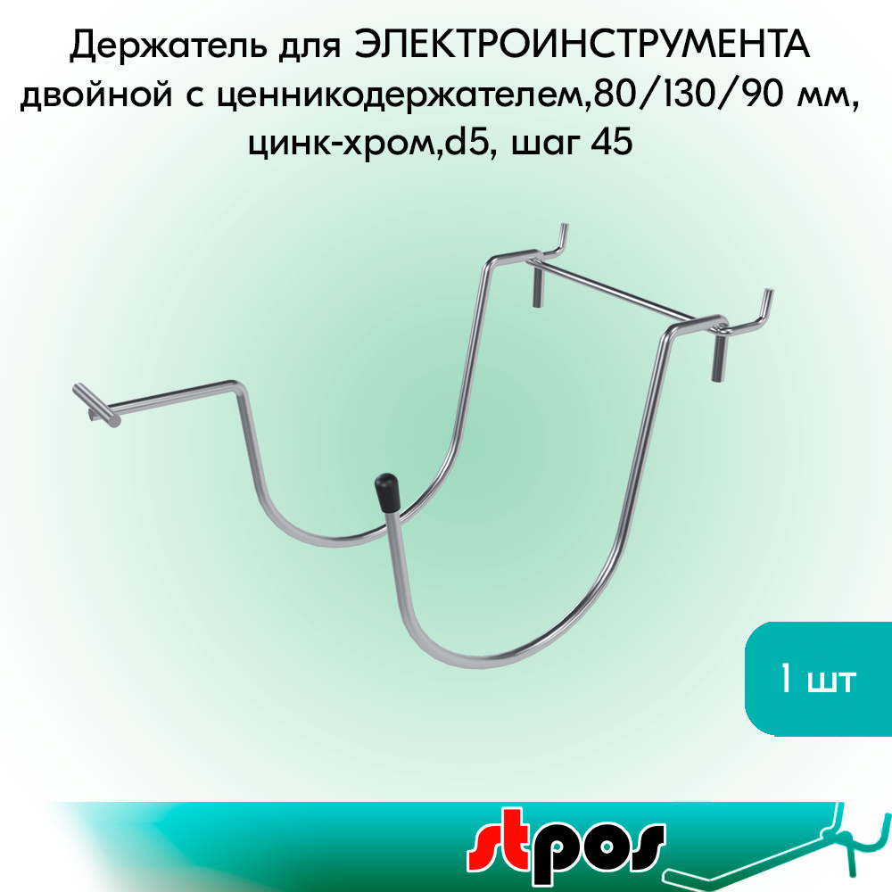 Держатель для ЭЛЕКТРОИНСТРУМЕНТА двойной c ценникодержателем,80/130/90 мм, цинк-хром, d5, шаг 45 информация: