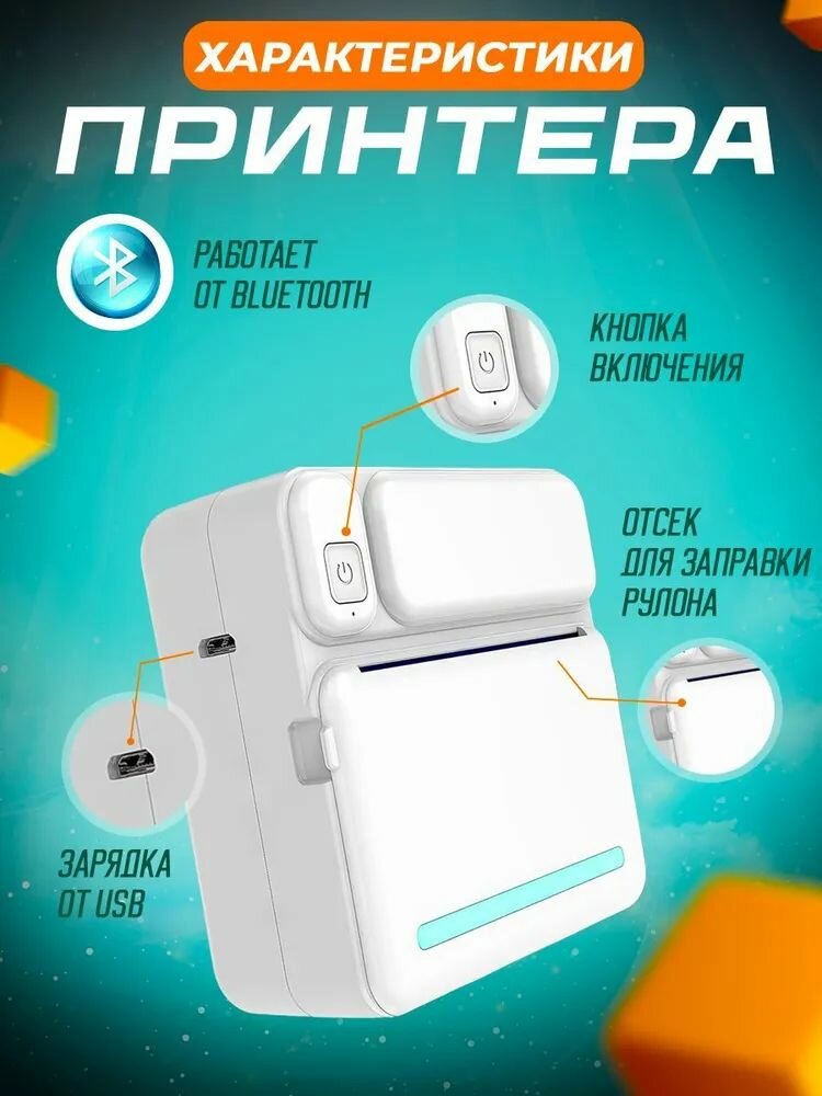 Термопринтер "Беспроводной мини-принтер для печати с телефона", лазерный, Bluetooth информация: