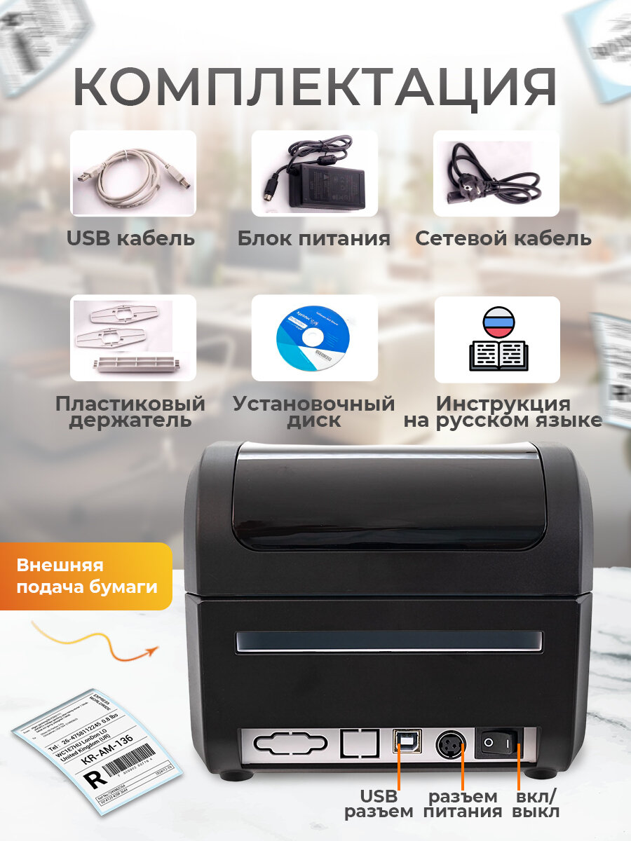 Термопринтер Xprinter XP423B, для маркировки, USB информация: