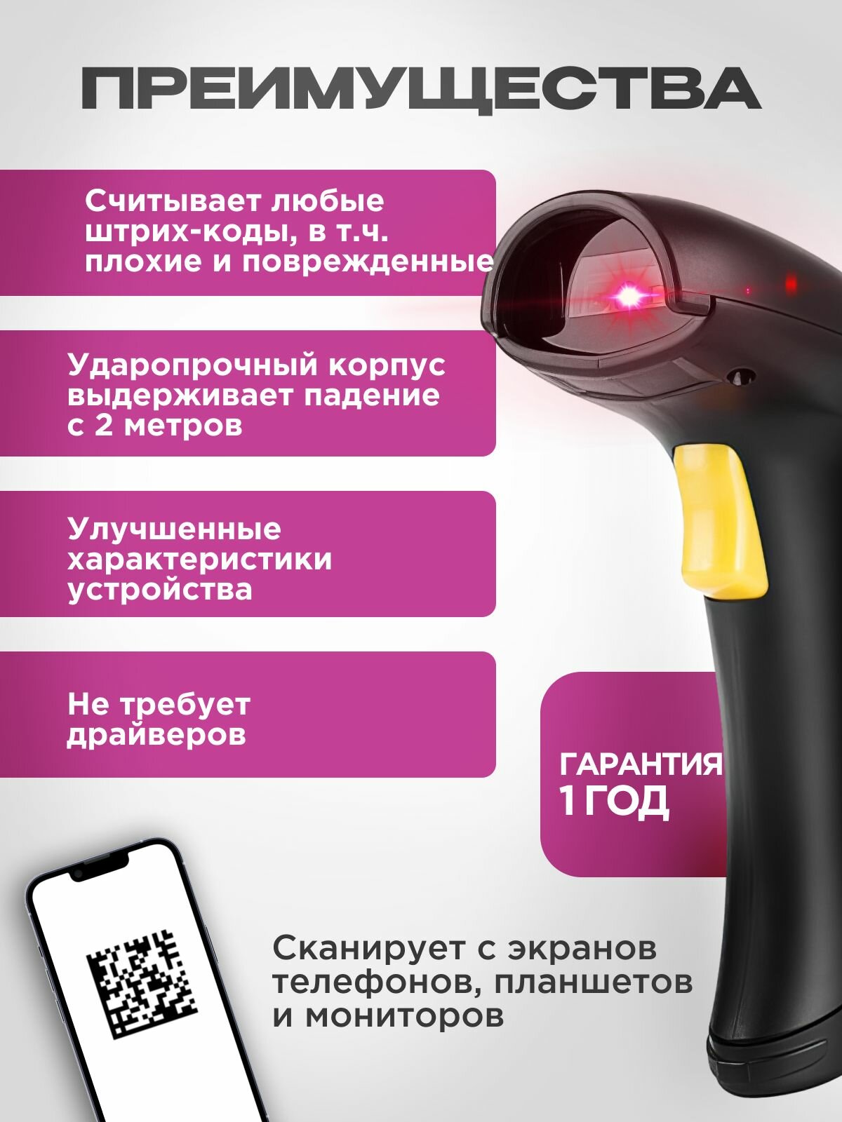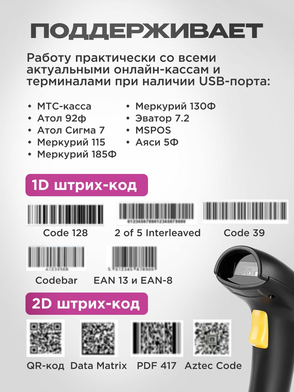 Беспроводной сканер штрих кода для ПВЗ, магазина, маркировки Честный знак ЕГАИС Эвотор Атол Меркурий для QR 1D 2D штрихкодов