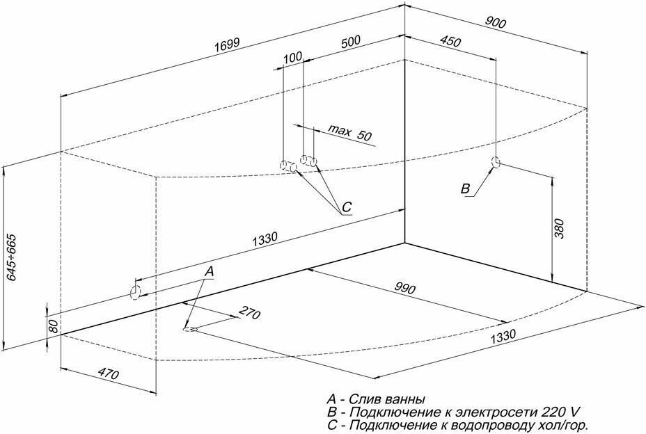 Акриловая ванна Aquanet Sofia 170x90 R с каркасом информация: