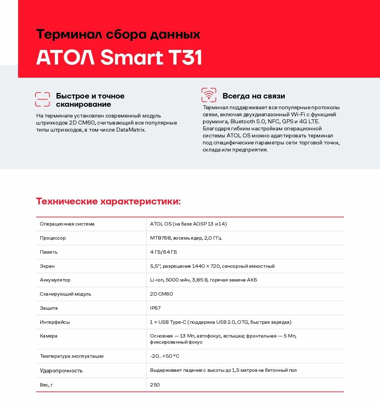 Терминал сбора данных АТОЛ Smart T31 информация: