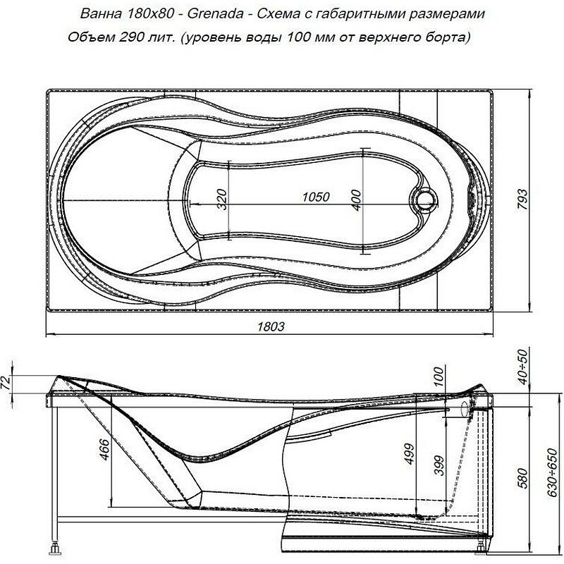 Акриловая ванна Aquanet Grenada 180x80 (с каркасом) информация: