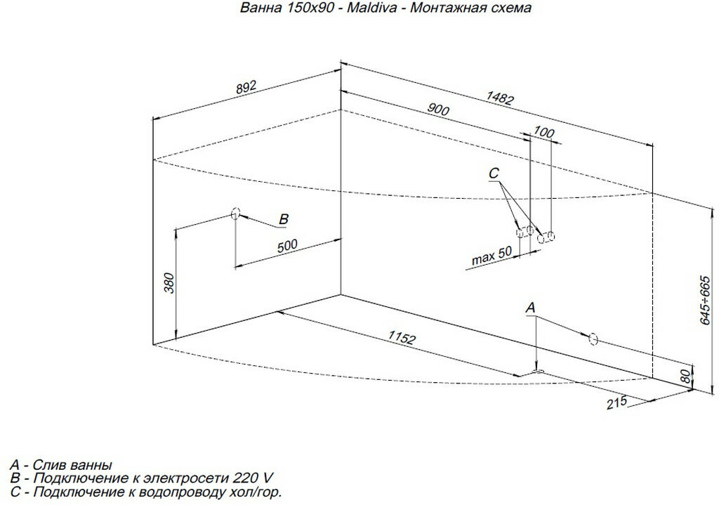 Акриловая ванна Aquanet Maldiva 150x90 L информация: