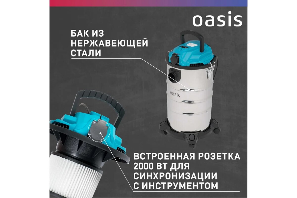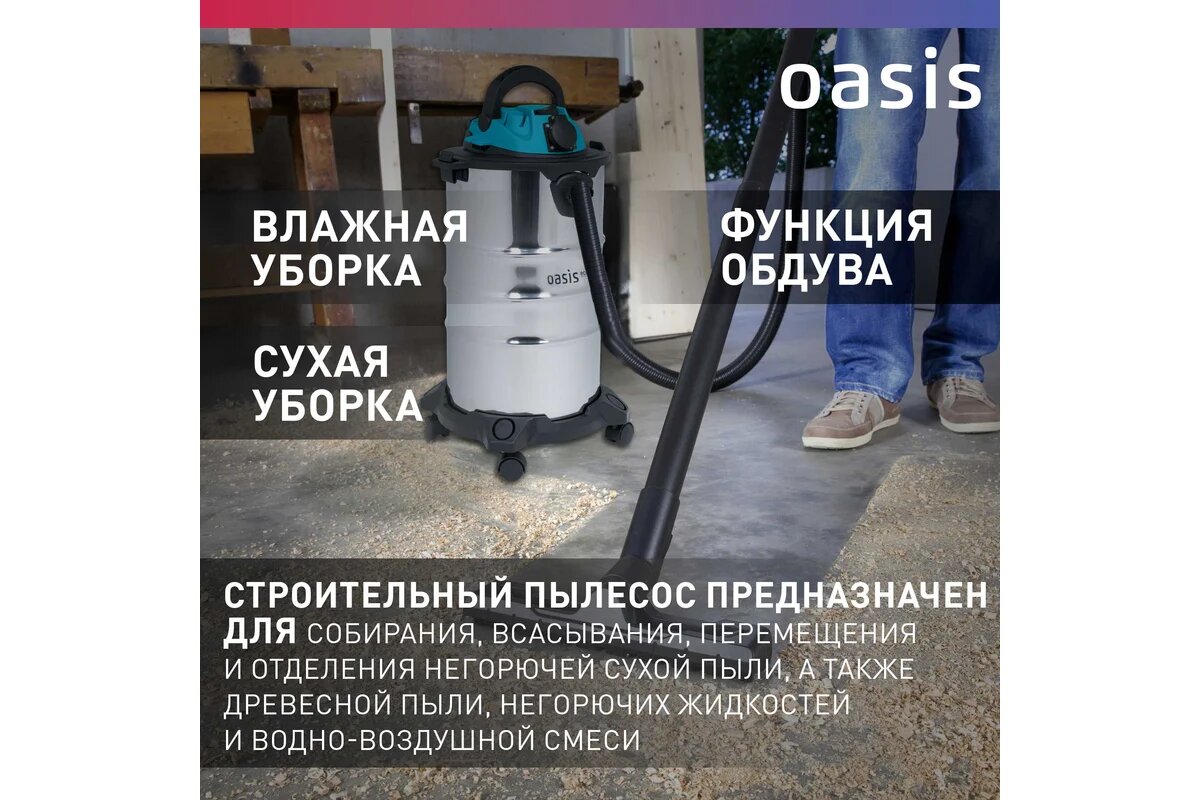 10 цен на Пылесос строительный Oasis VC-150/30, мощность 1500 Вт, сухой и влажный, 30 л