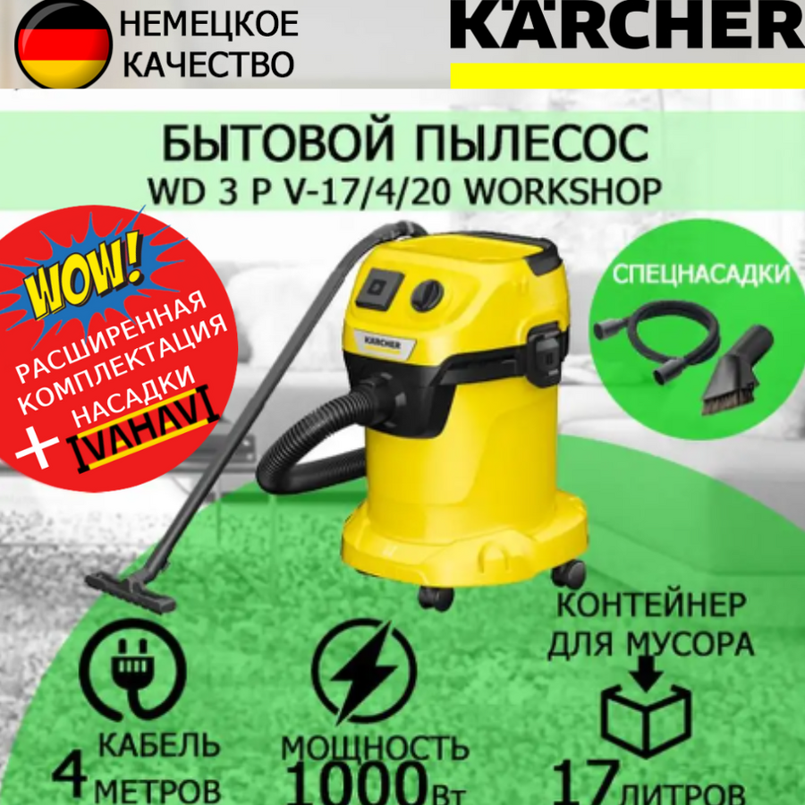 Мы выбрали 10 лучших цен на Хозяйственный пылесос Karcher WD 3 P V-17/4/20 Workshop+ латексные перчатки. Перед тем как купить Хозяйственный пылесос Karcher WD 3 P V-17/4/20 Workshop+ латексные перчатки посмотрите найденные предложения из Яндекс Маркета и других сайтов на основе XML фидов.