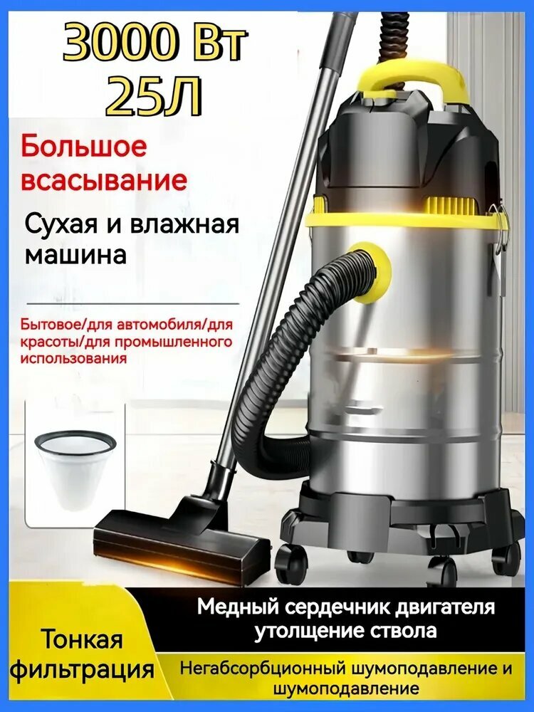 10 цен на Строительный пылесос, 25л, мощность 3000Вт, сухая и влажная уборка