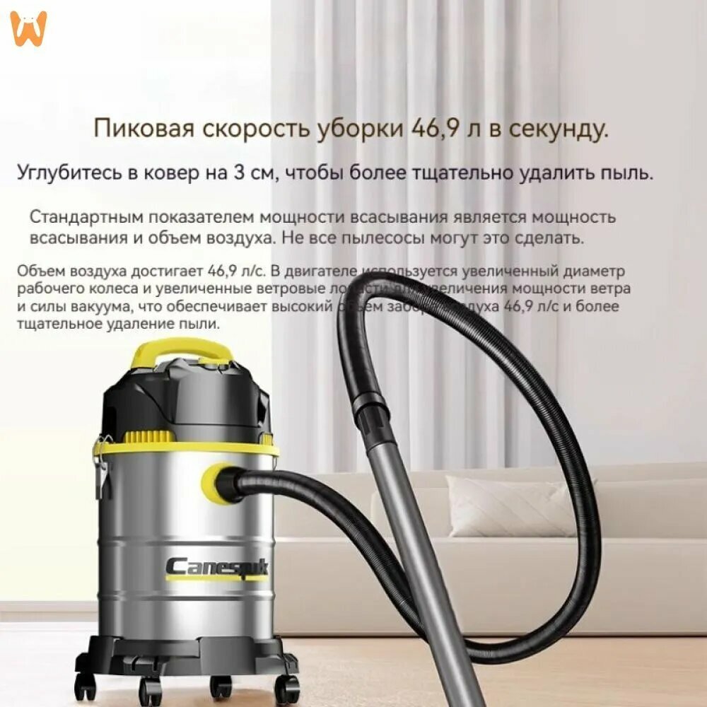 10 цен на Строительный пылесос, 25л, 1800Вт, сухой и влажный тип уборки, система очистки фильтра полуавтоматическая