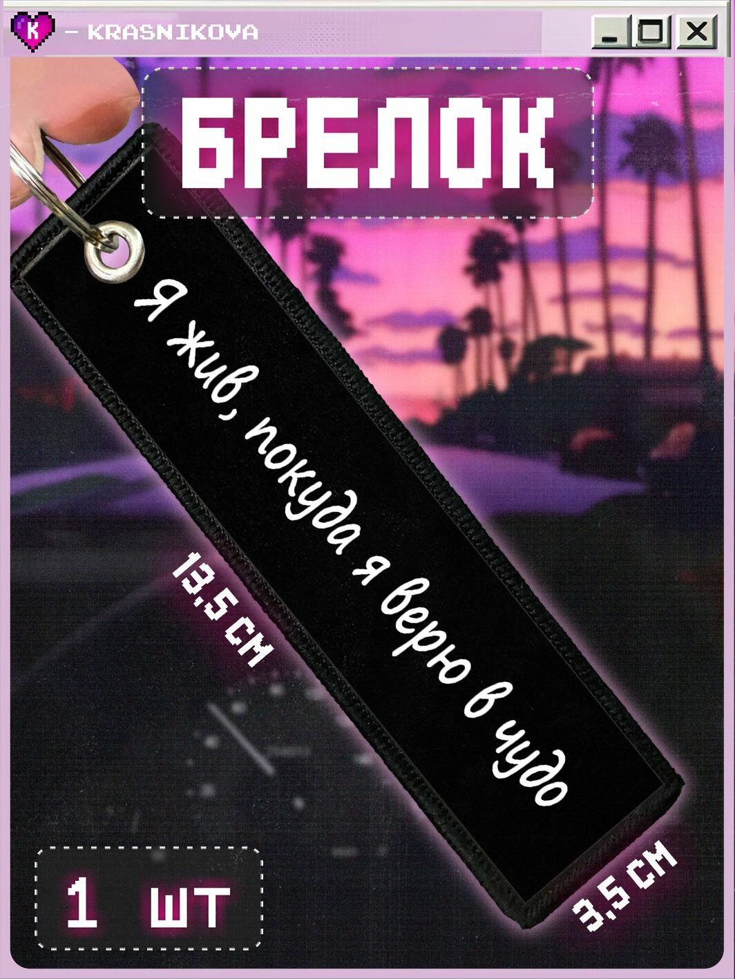 Брелок KRASNIKOVA, гладкая фактура, черный, белый информация: