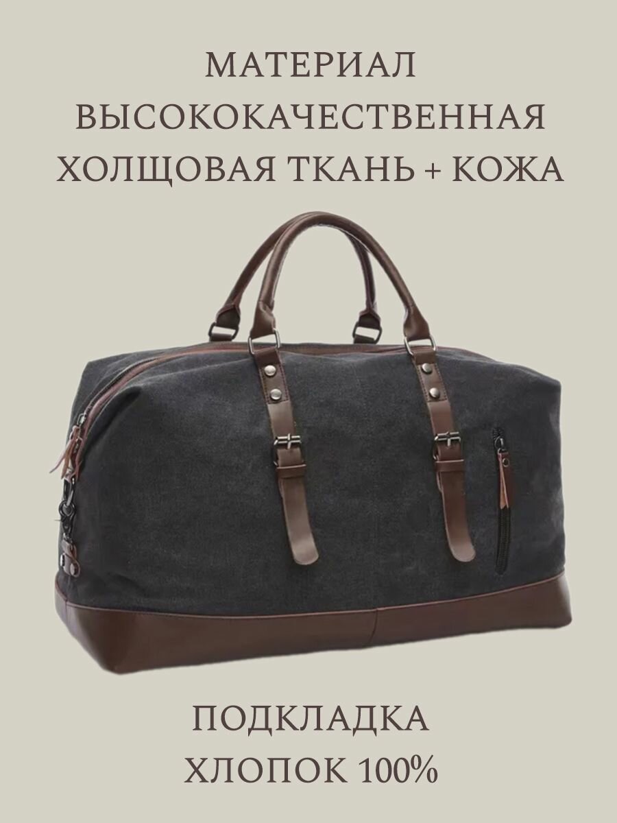 Сумка дорожная MORAIS, 24х33х54 см, ручная кладь, черный, коричневый информация: