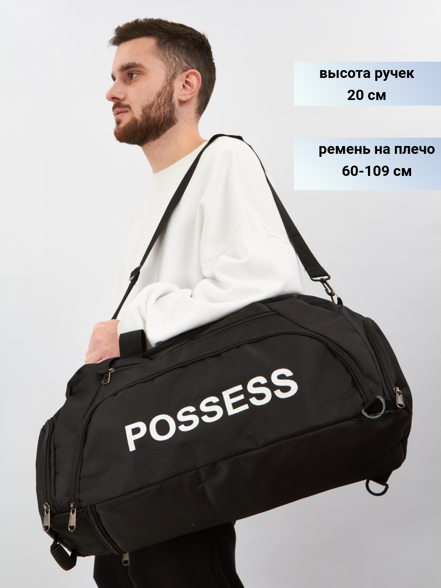Сумка спортивная POSSESS, 29 л, 26х27х55 см, черный информация: