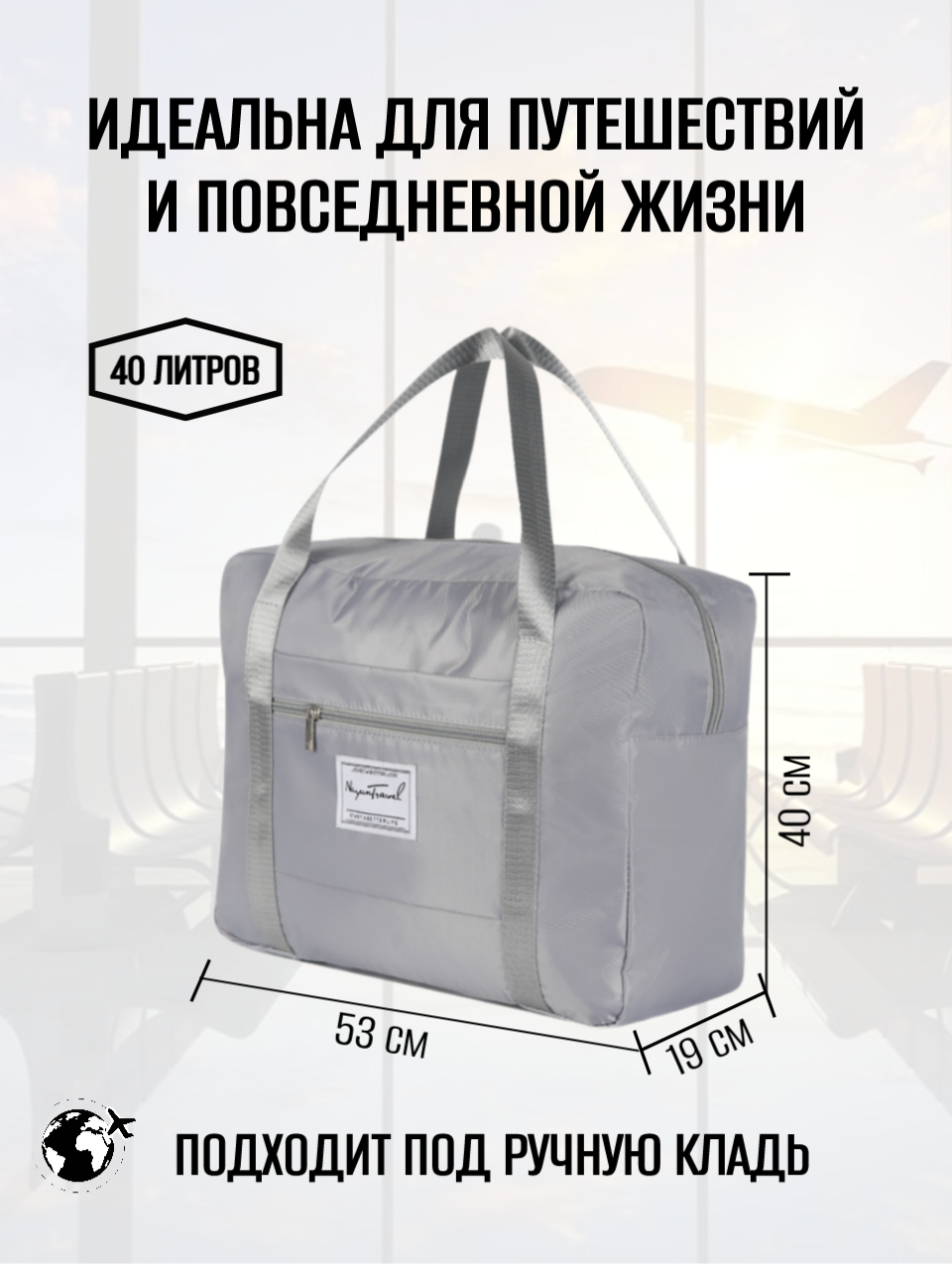 10 цен на Сумка дорожная , 40 л, 19х40х53 см, ручная кладь, серый