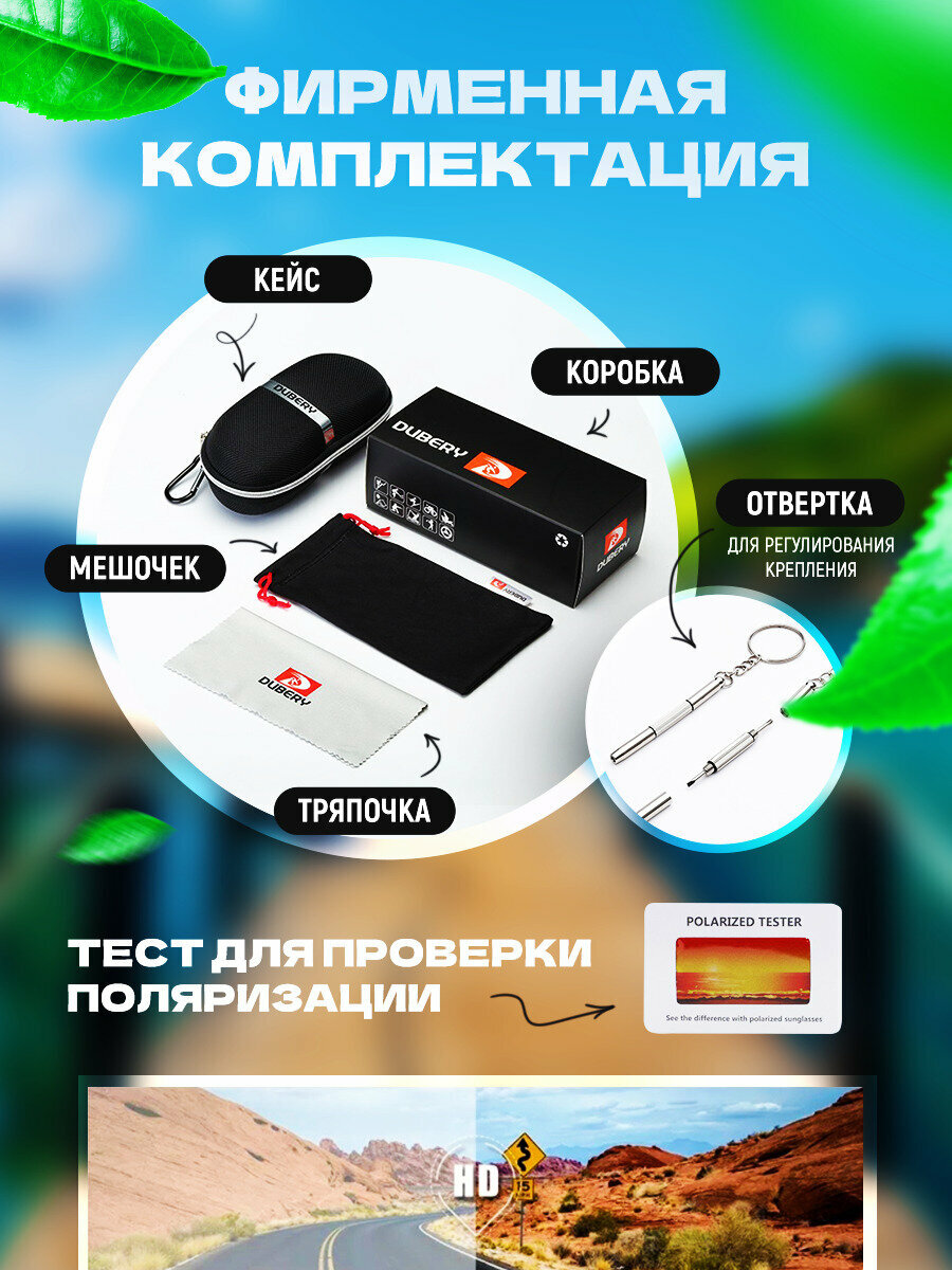 Солнцезащитные очки DUBERY, мультиколор, черный, серый, хаки, красный, синий, зеленый, оранжевый 3 374 ₽