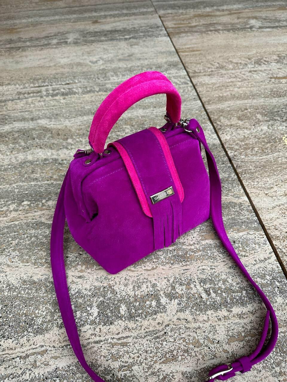 Сумка саквояж Shapely, фактура бархатистая, фиолетовая информация: