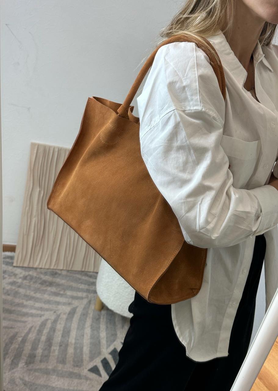 Сумка шоппер Shapely, фактура бархатистая, кэмл информация: