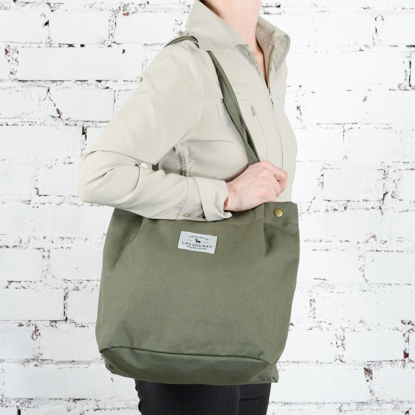 10 цен на Сумка шоппер Lan Sha Wan, фактура гладкая, песочный