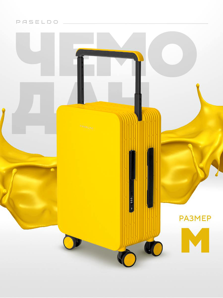 10 цен на Чемодан PASELDO, 69 л, размер M, желтый/черный