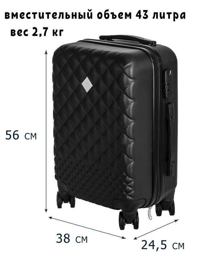 Чемодан SUPRA LUGGAGE, 43 л, размер S, черный информация: