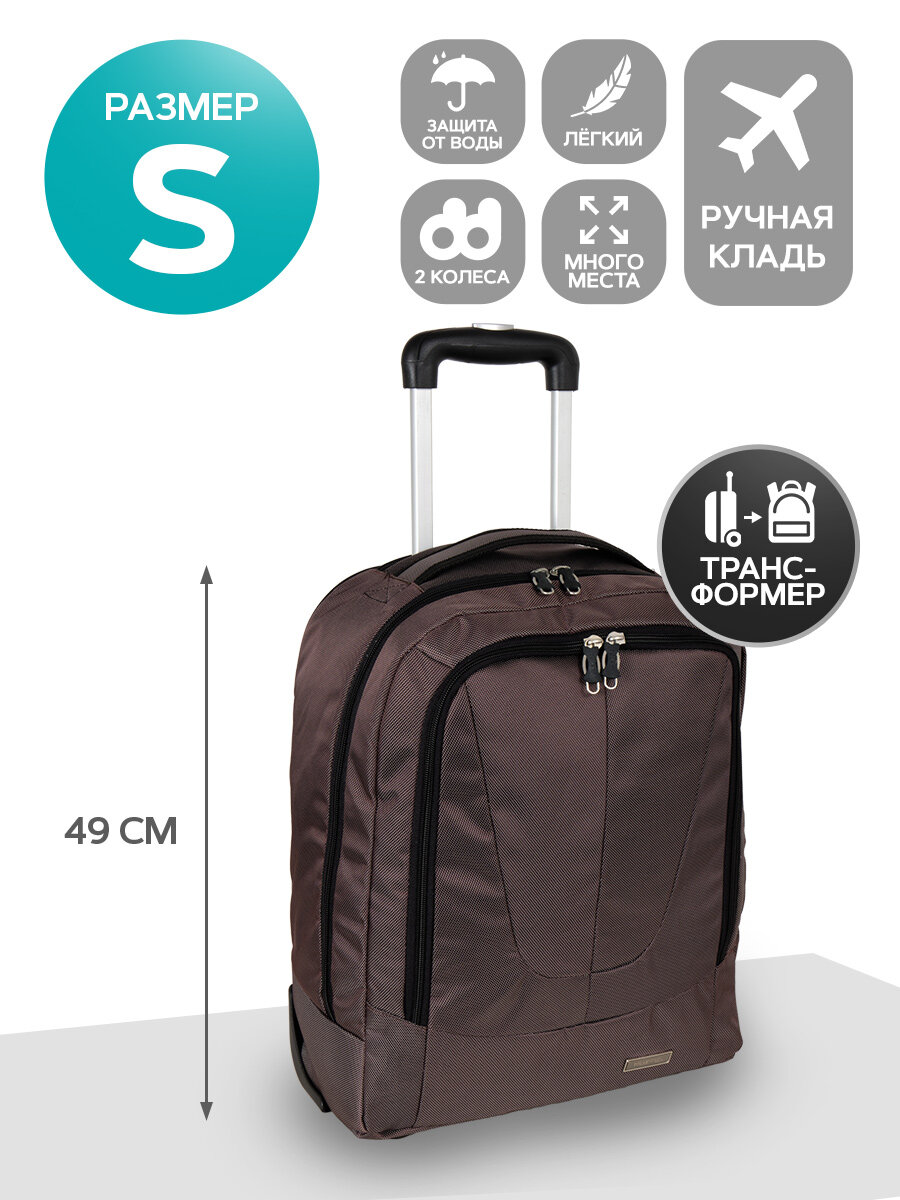 Чемодан-рюкзак POLAR, 35 л, размер S, коричневый информация: