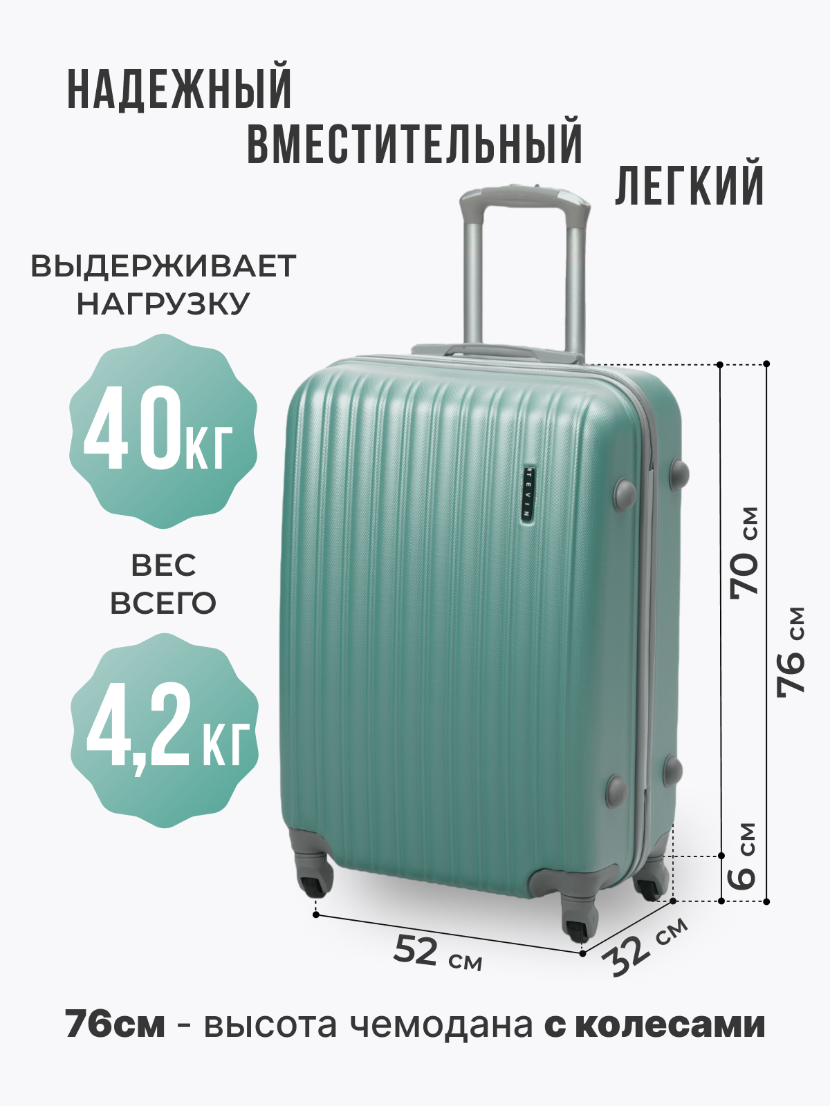 Чемодан TEVIN, 120 л, размер L+, море информация:
