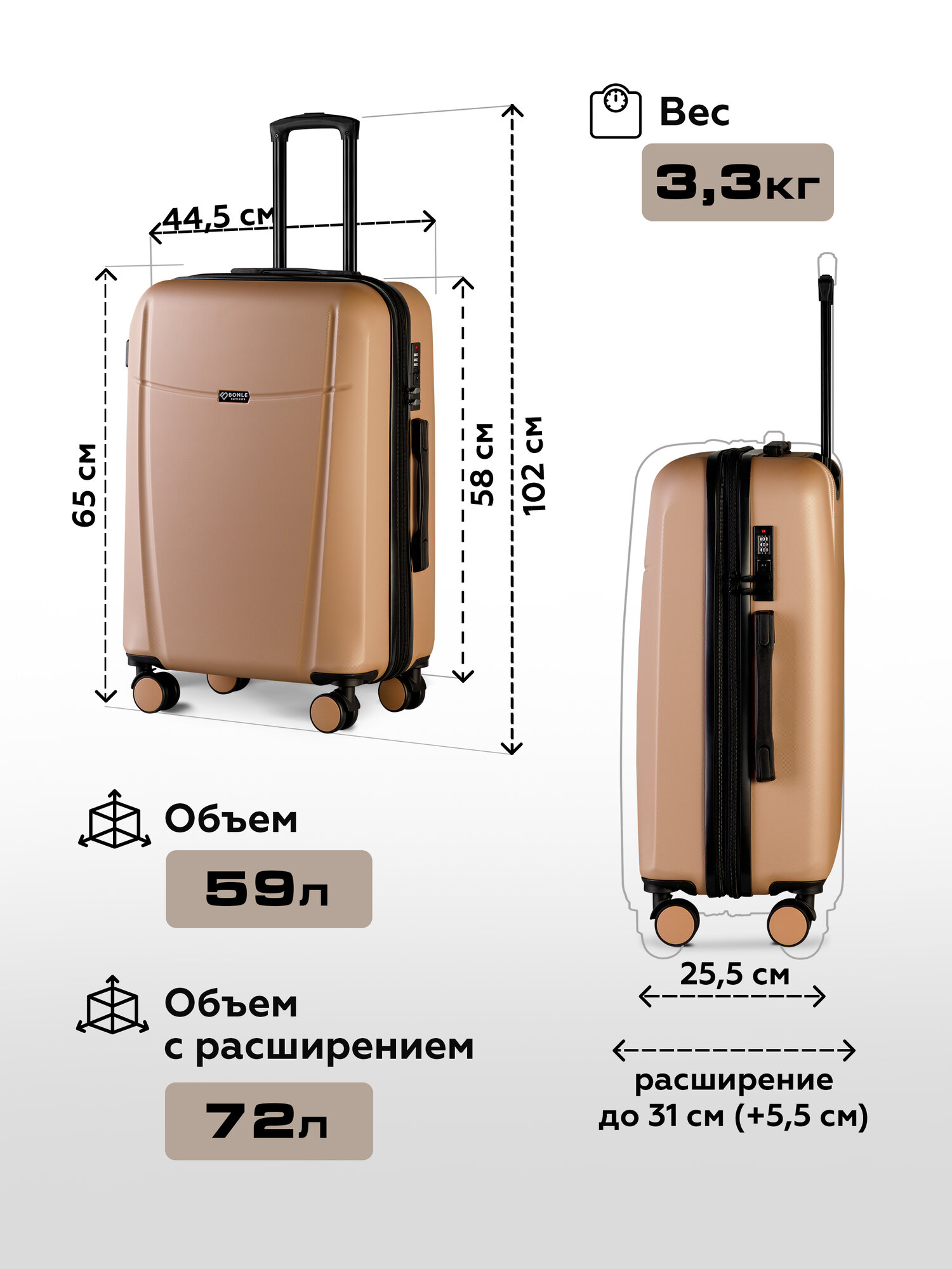 Чемодан Bonle, 101 л, капучино 10 455 ₽