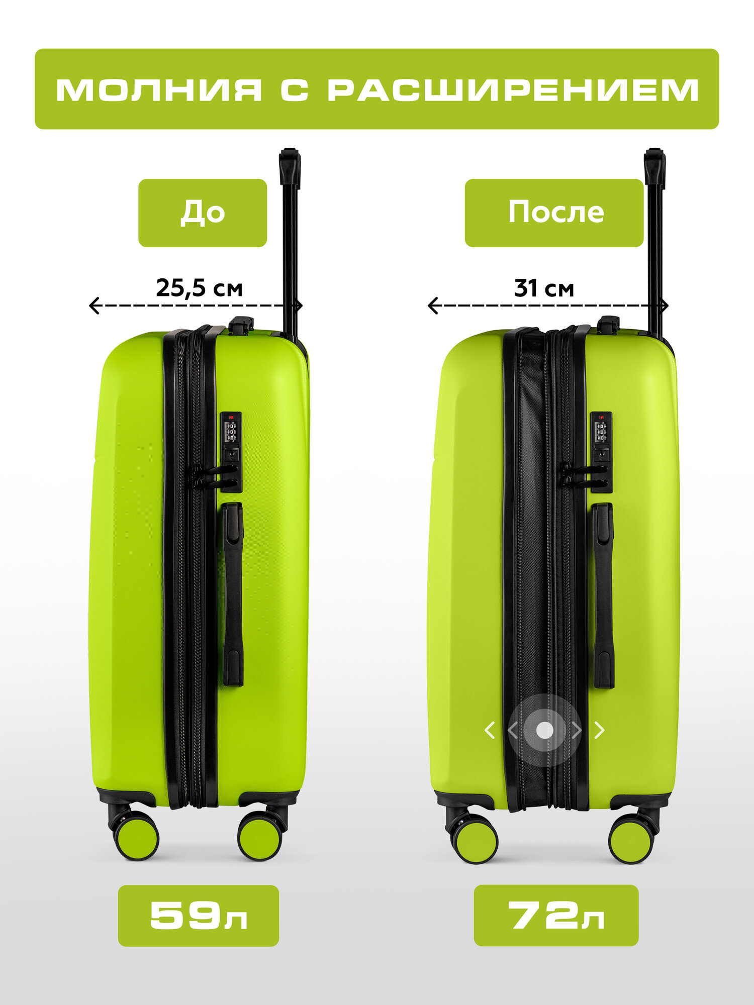 Чемодан Bonle, 101 л, салатовый 10 455 ₽