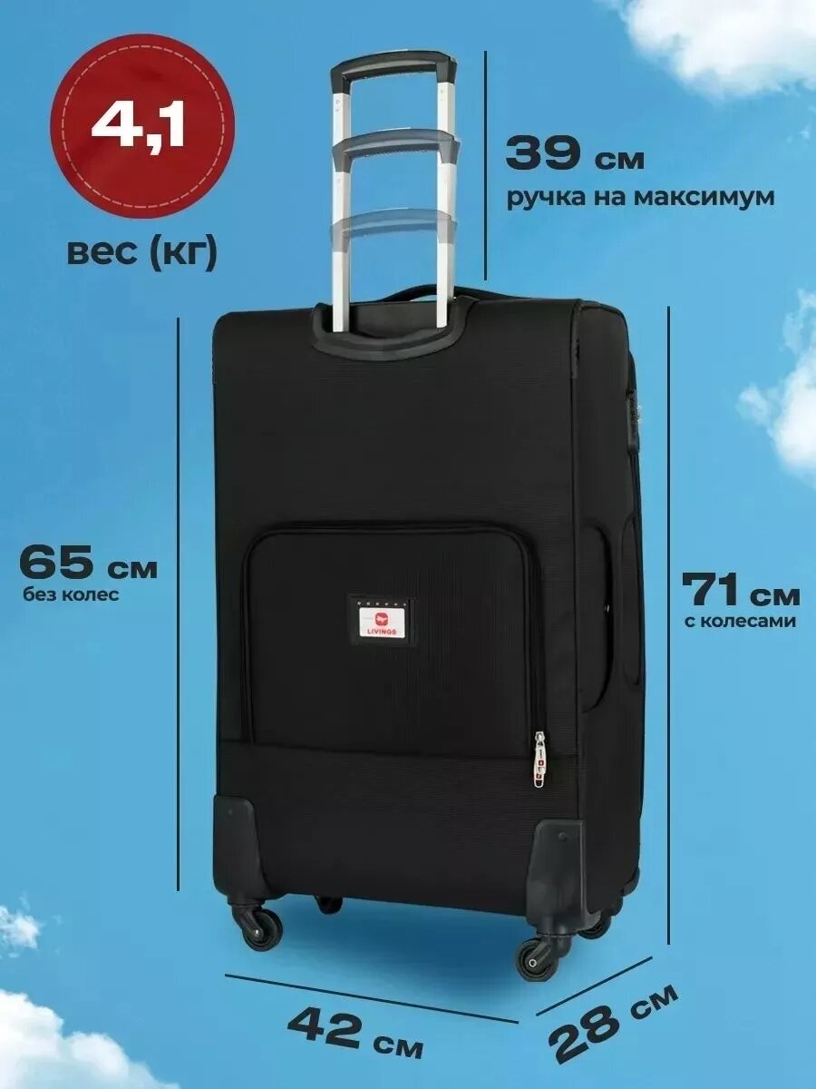 Чемодан LIVINGS, 84 л, размер L, черный информация: