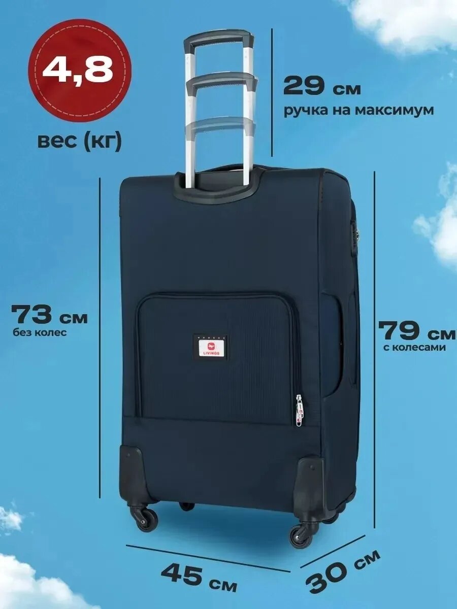 Чемодан LIVINGS, 84 л, размер L, синий 8 945 ₽