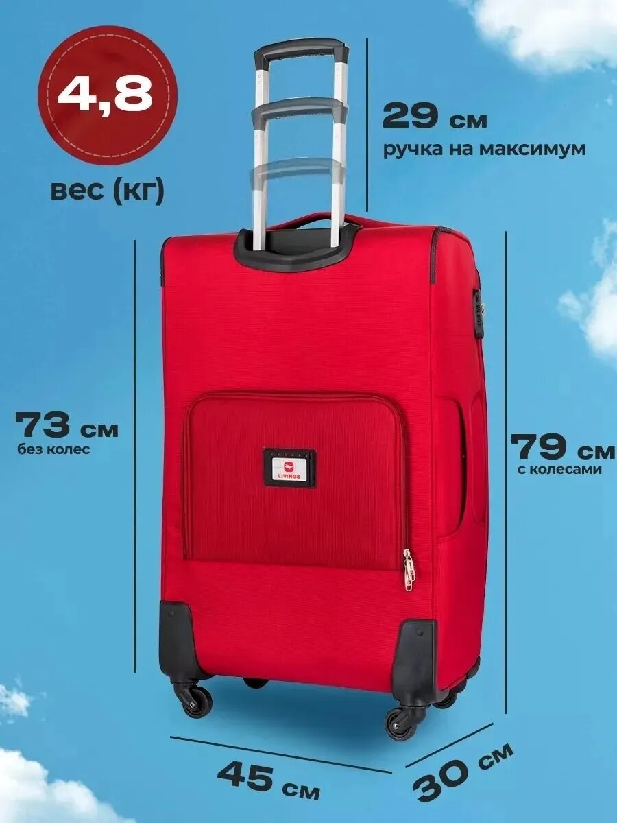 Чемодан LIVINGS, 108 л, размер XL, красный информация: