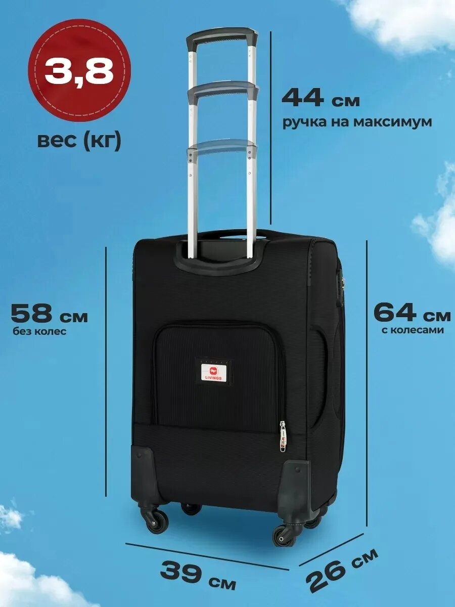 Чемодан LIVINGS, 66 л, размер M, черный информация: