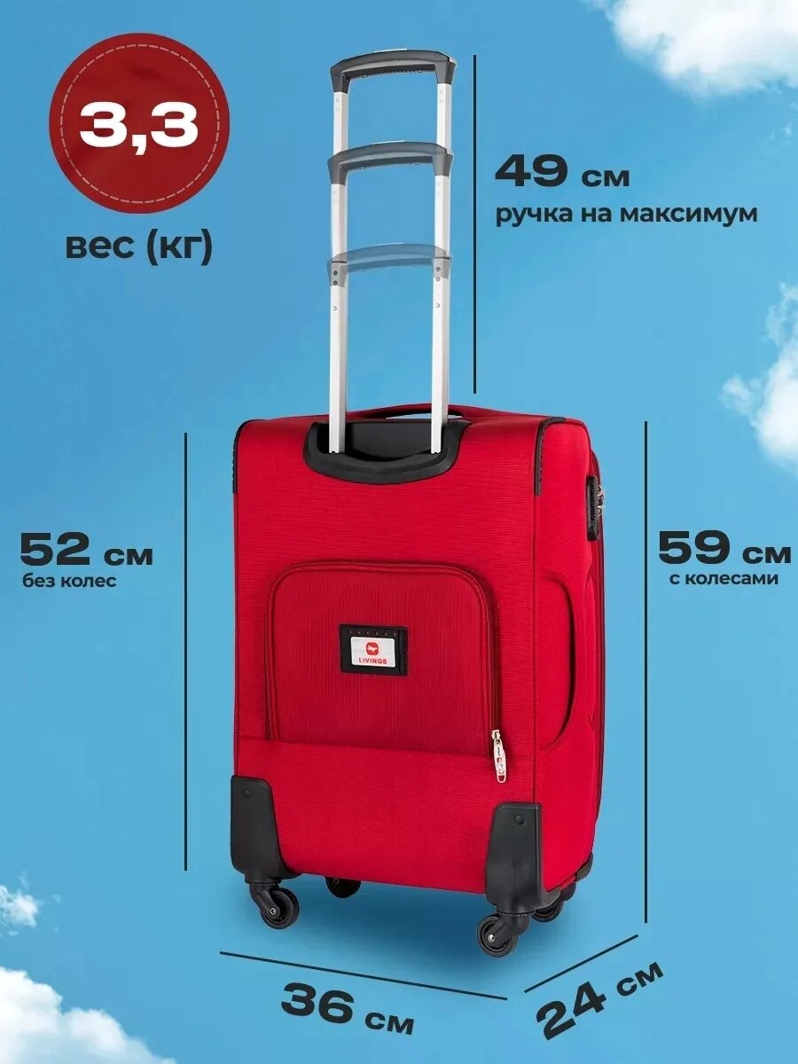 Чемодан LIVINGS, 50 л, размер S, красный информация: