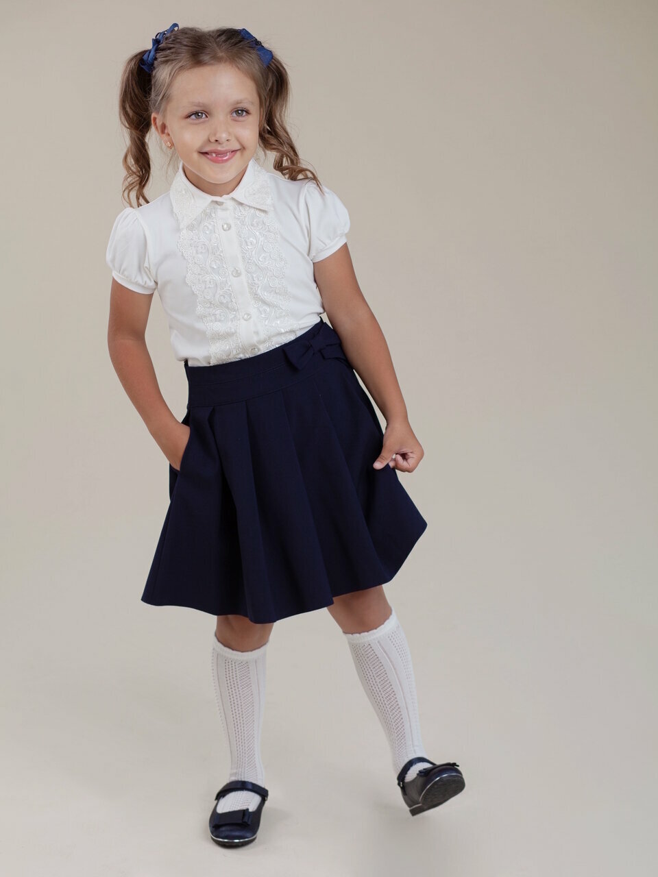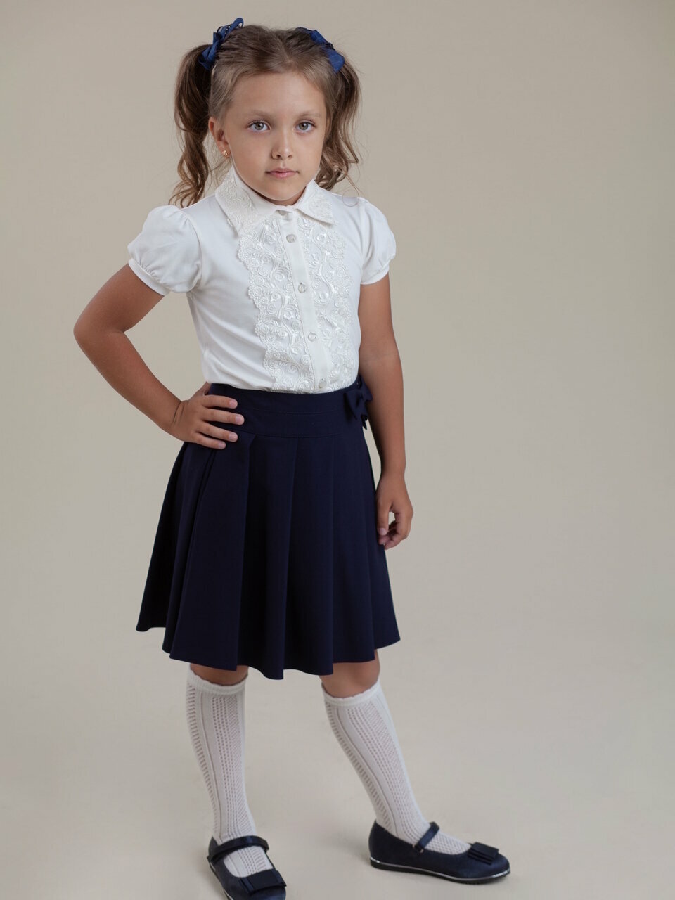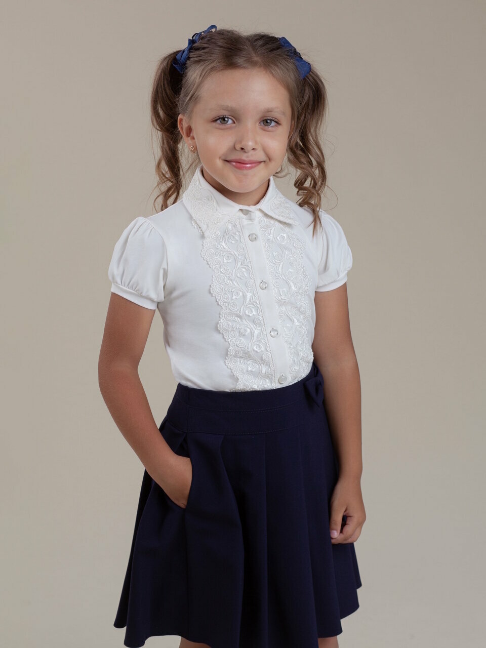 Школьная блуза Наследникъ Выжанова Детская, размер 128, экрю информация: