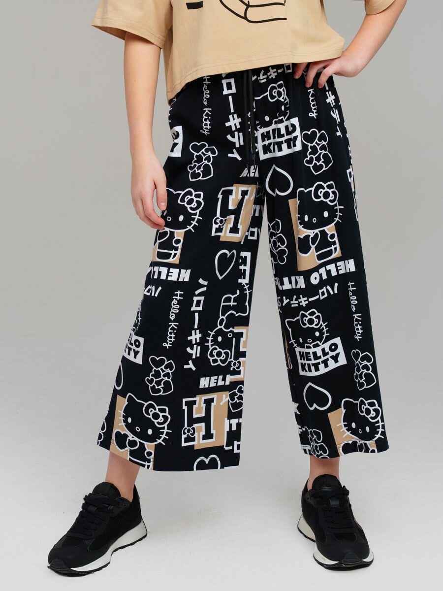 Брюки playToday, размер 146, черный, бежевый, белый 1 583 ₽