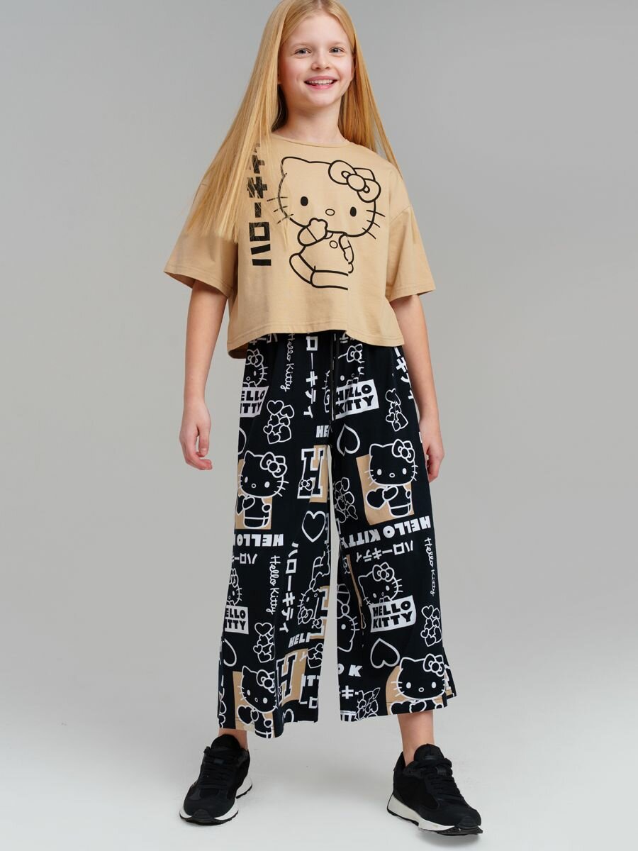 Брюки playToday, размер 158, черный, бежевый, белый 1 583 ₽
