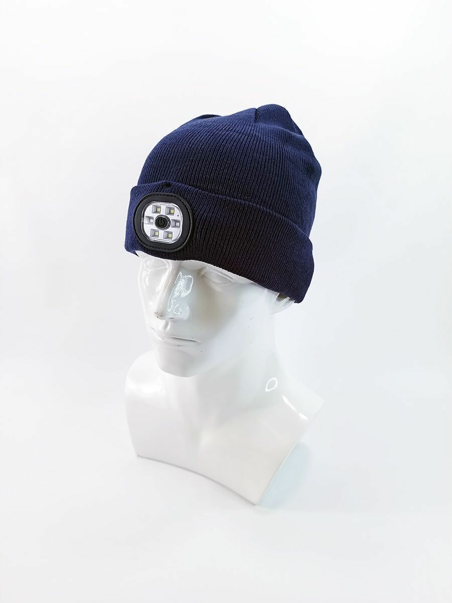 10 цен на Шапка-бини Фонарик для взрослых и детей, размер 52-58, темно-синий