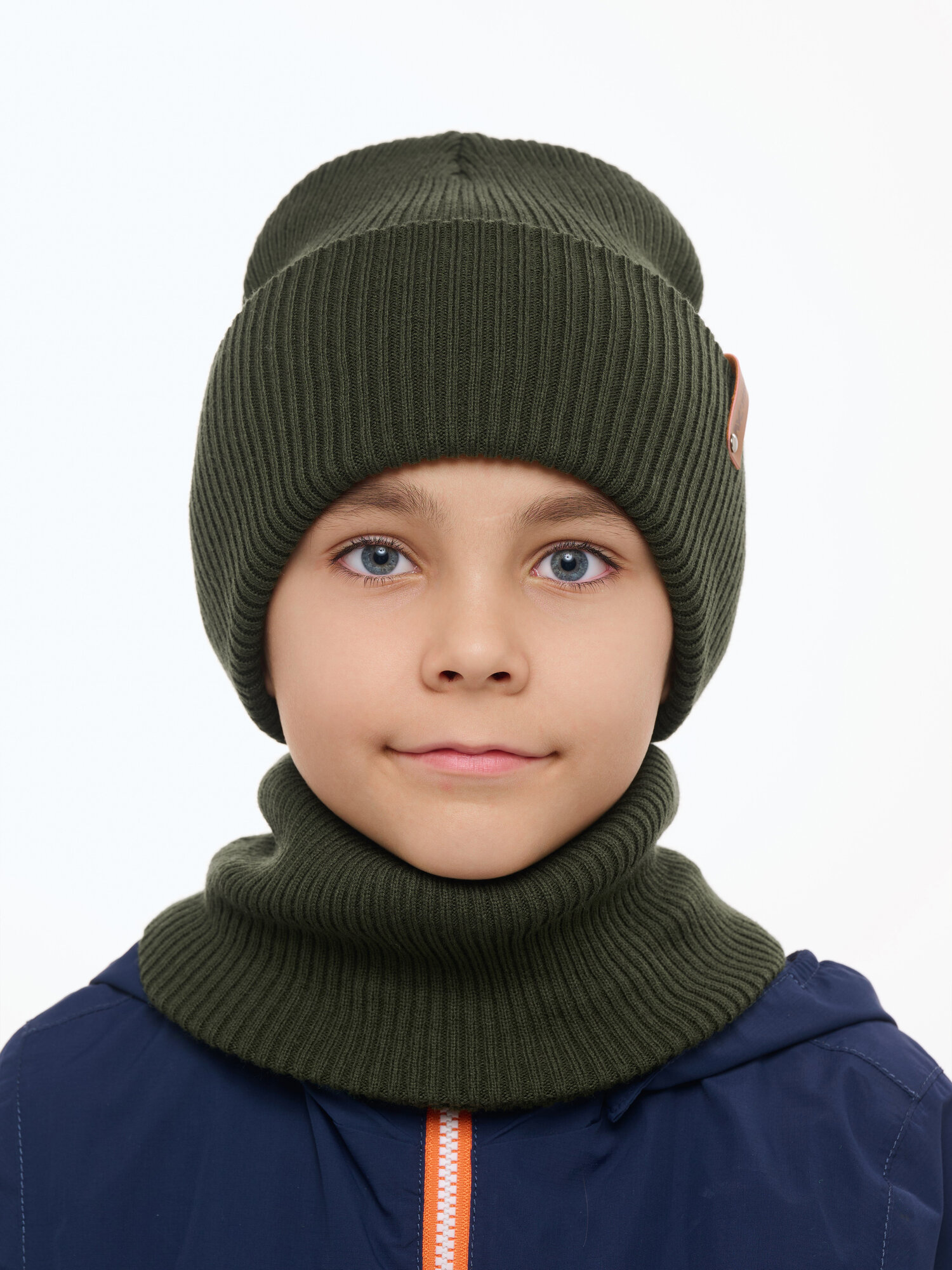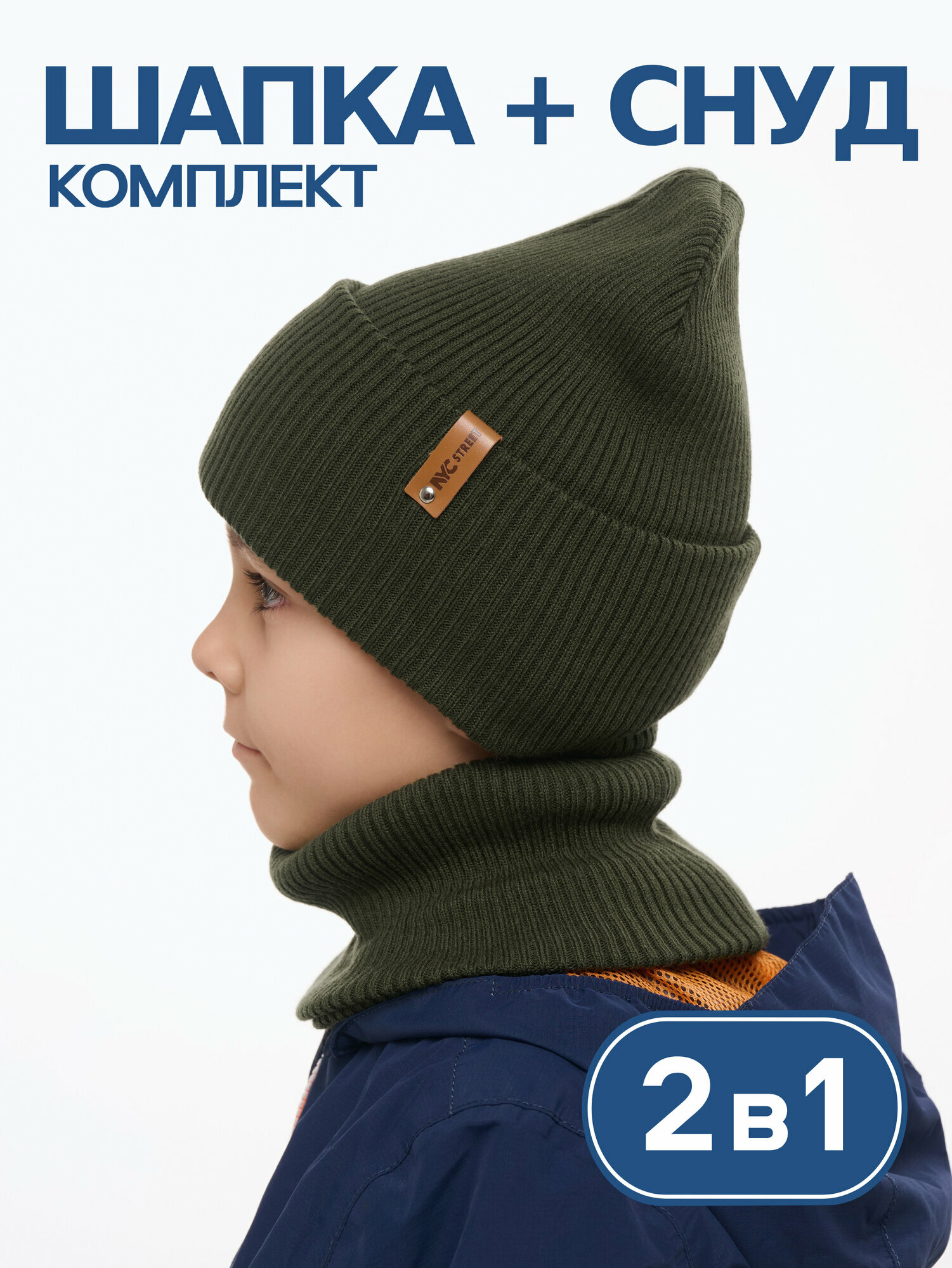 Шапка-бини NYCkids для детей, размер 54-58, оливковый 1 200 ₽