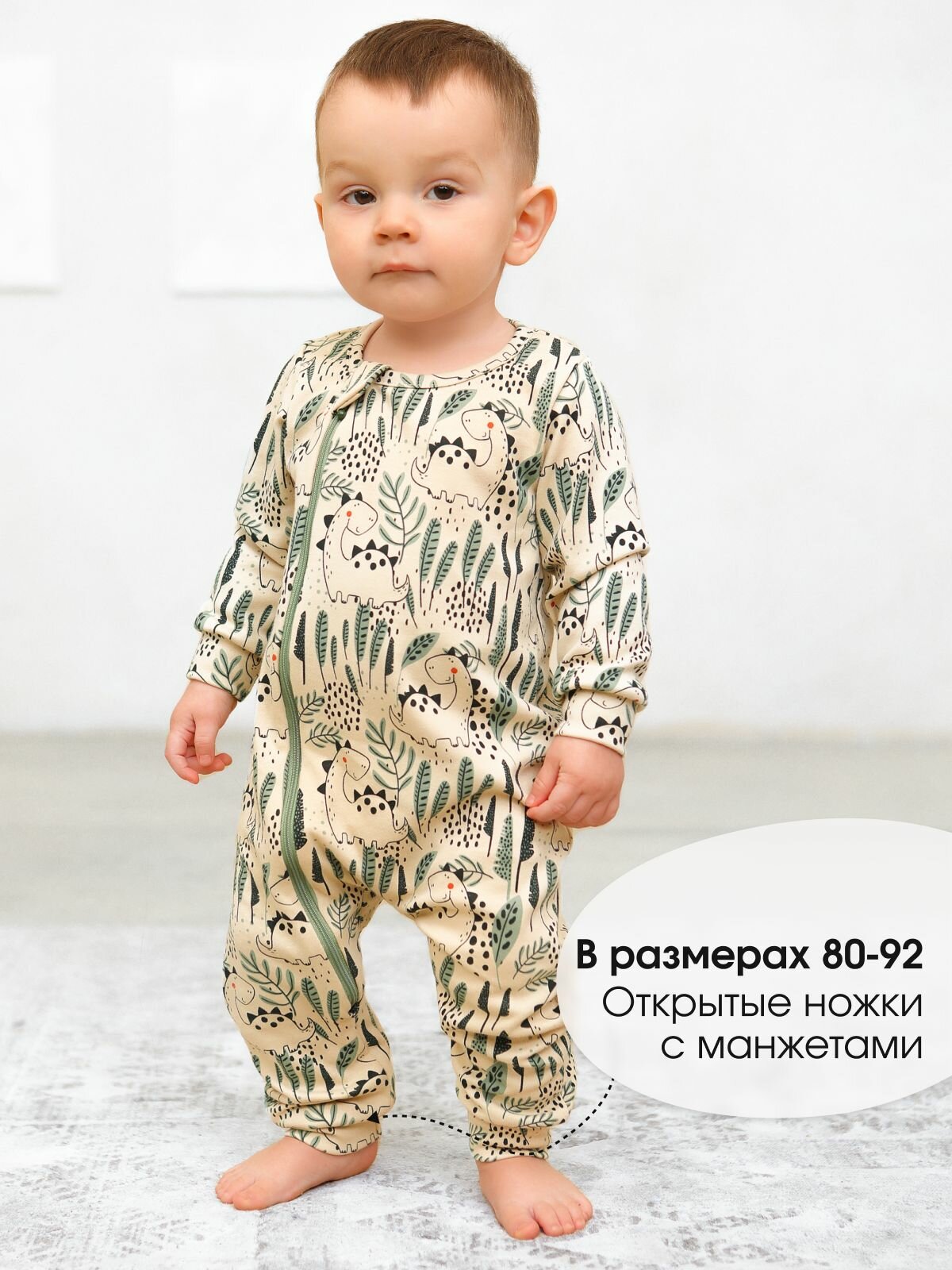 Комбинезон BABYGLORY Baby smile, закрытая стопа, размер 28-86, светло-бежевый 1 500 ₽