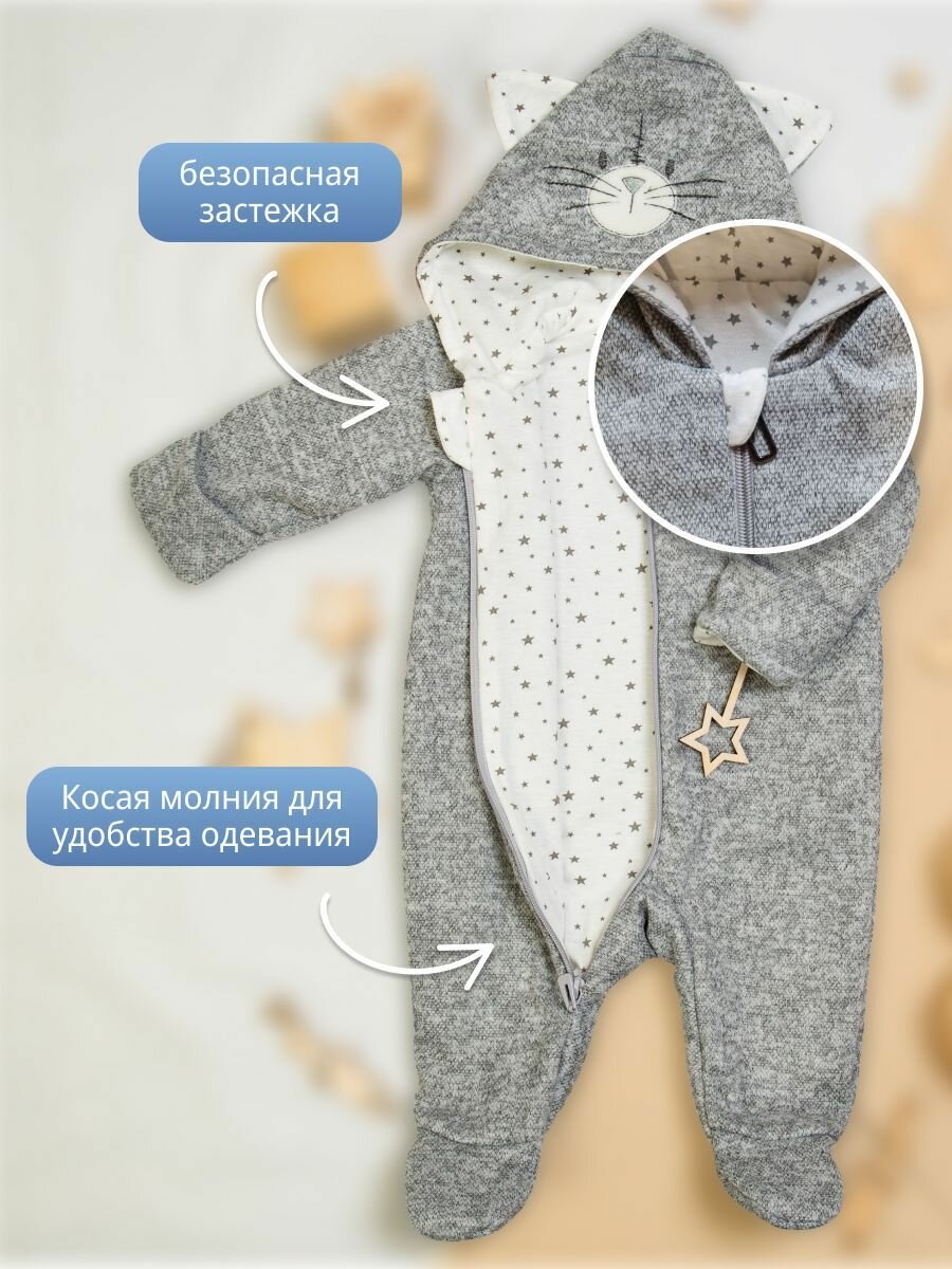 Комбинезон Nice cat, закрытая стопа, размер 56, серый