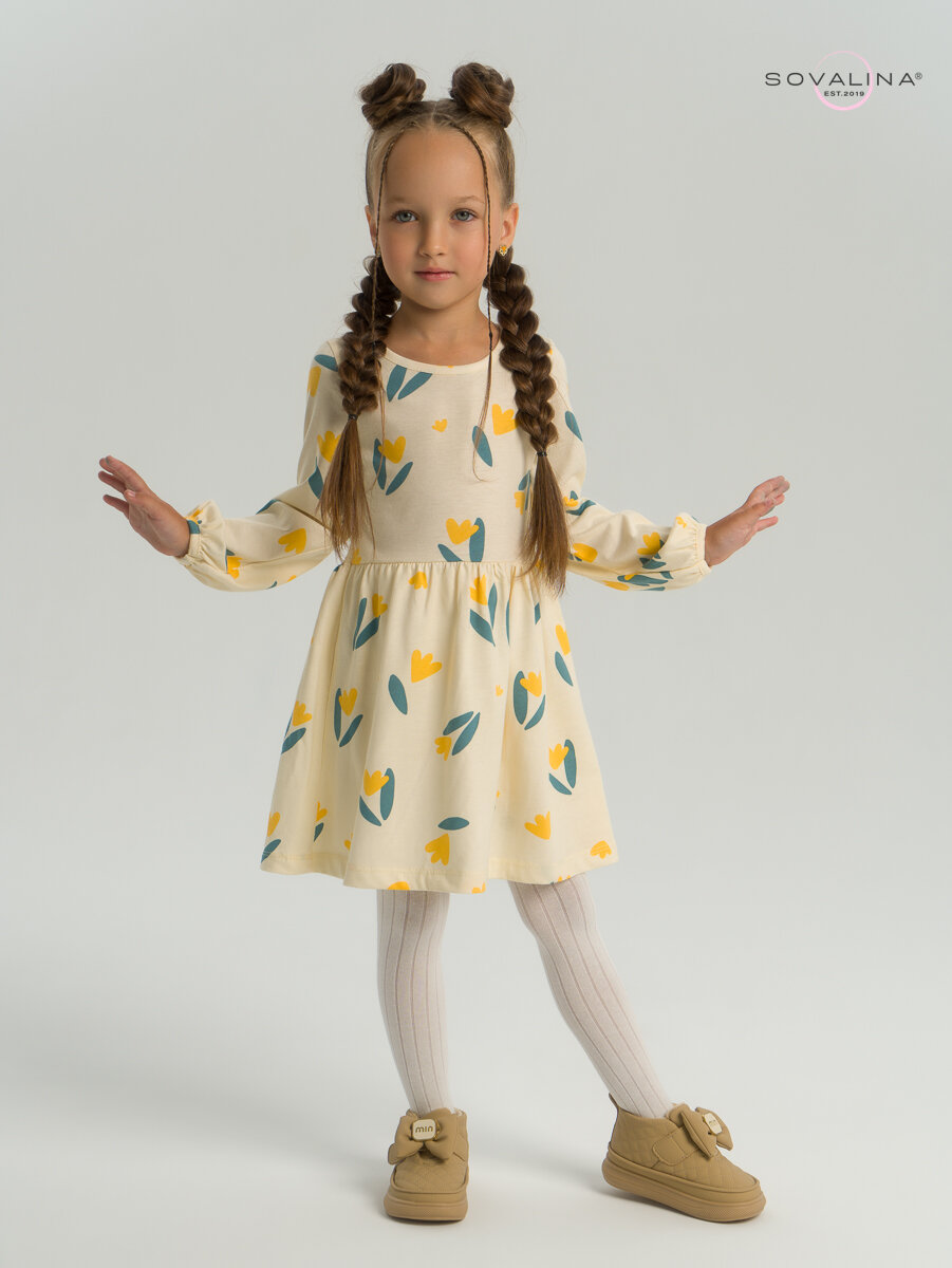 10 цен на Школьное платье SOVALINA, размер 116, бежевый, желтый