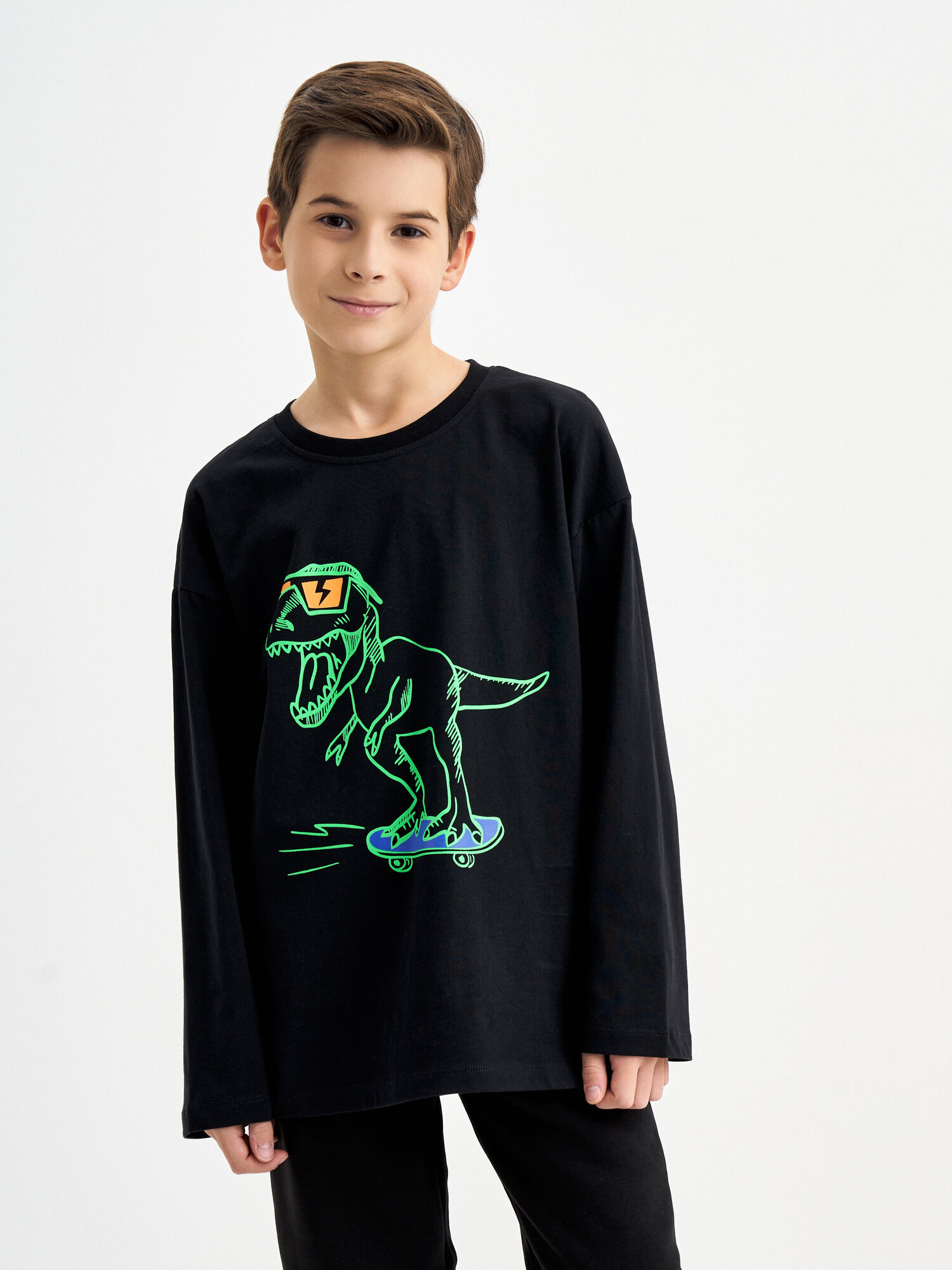 Лонгслив Kogankids, размер 152 / 12 лет, черный принт информация: