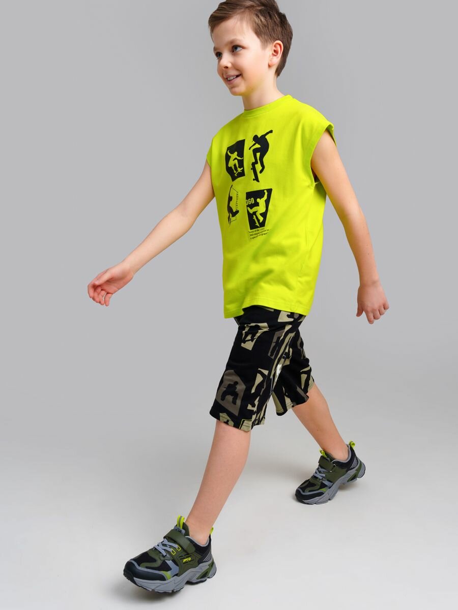 10 цен на Футболка playToday Весна-лето 2025, размер 128, светло-зеленый/черный