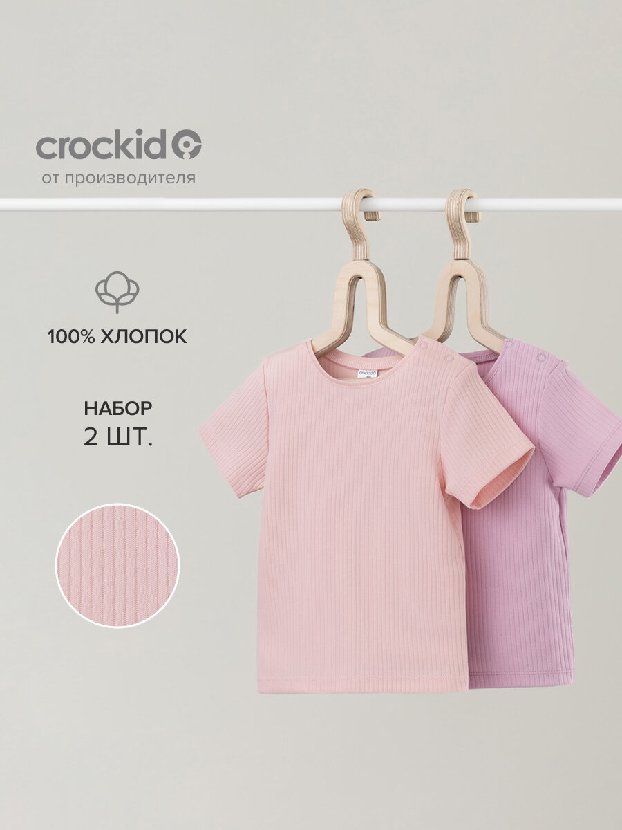 Футболка crockid К 302521-2уп/фламинго,тропический персик, комплект из 2 шт., размер 48/74, розовый информация: