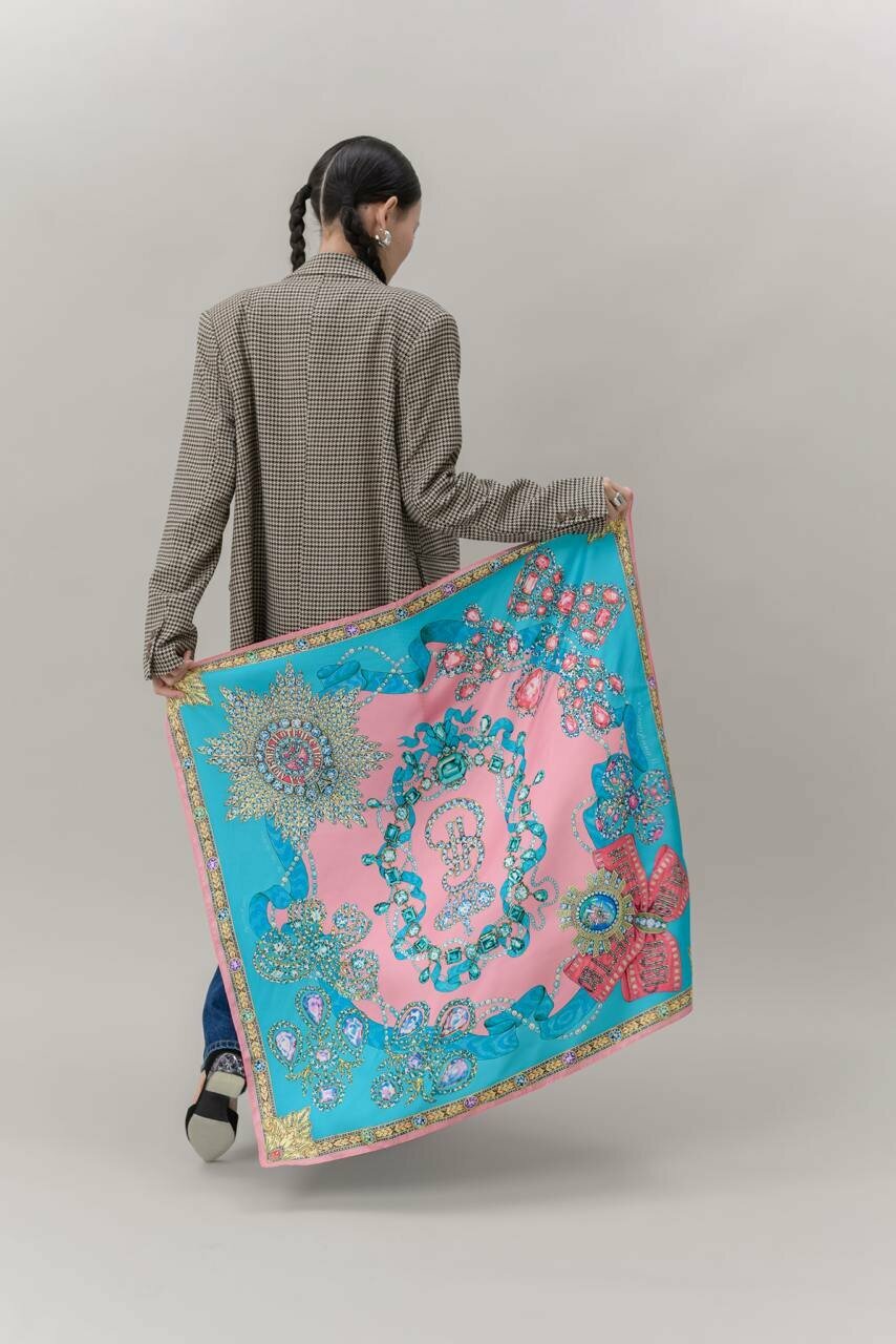 10 цен на Платок Русские в моде by Nina Ruchkina Драгоценности Екатерины Великой для женщин,90х90 см, blue