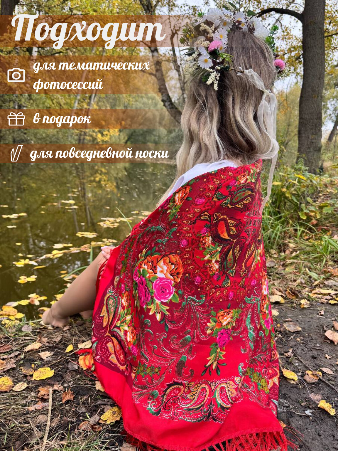 Платок КОСЫНКА для женщин,120х120 см, красный информация: