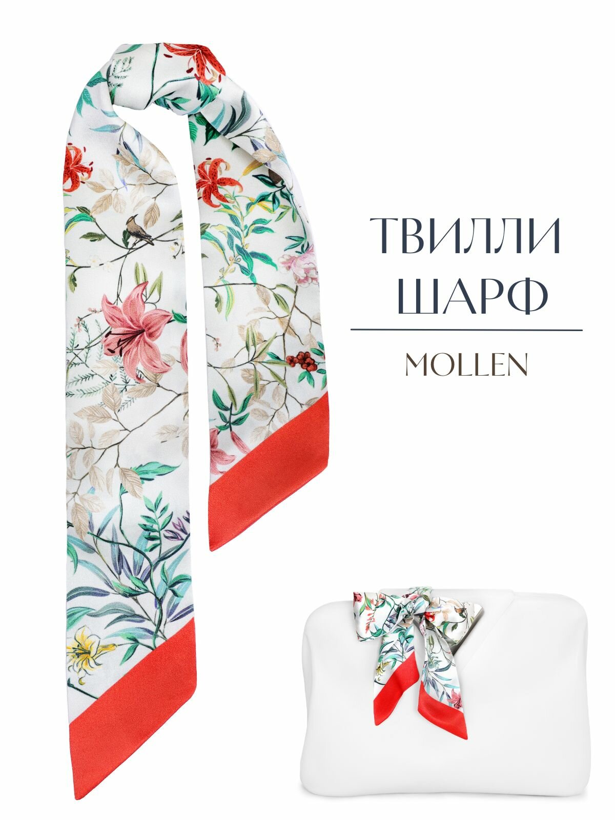 10 цен на Шарф Mollen для женщин,87х6 см, красный, белый