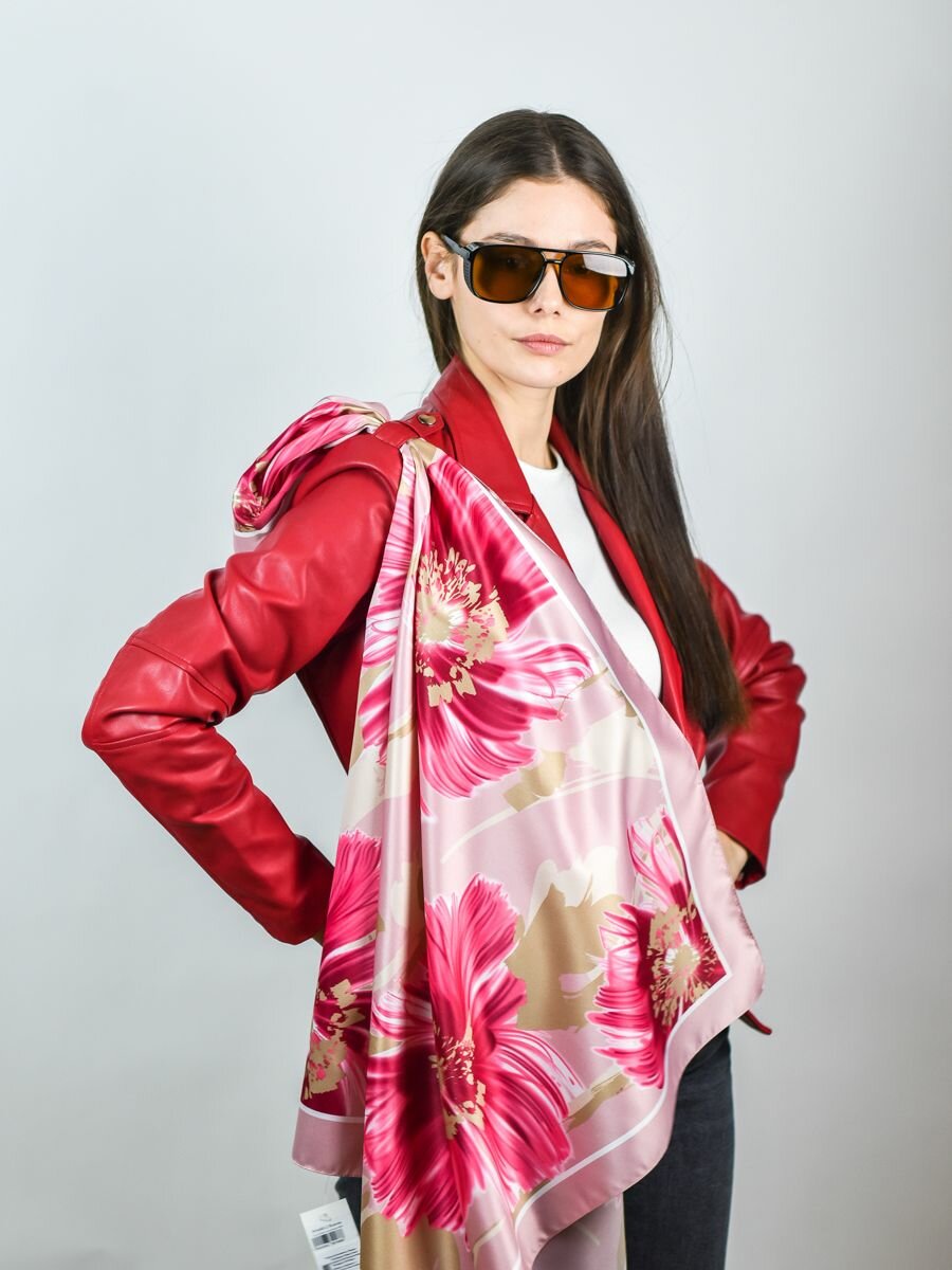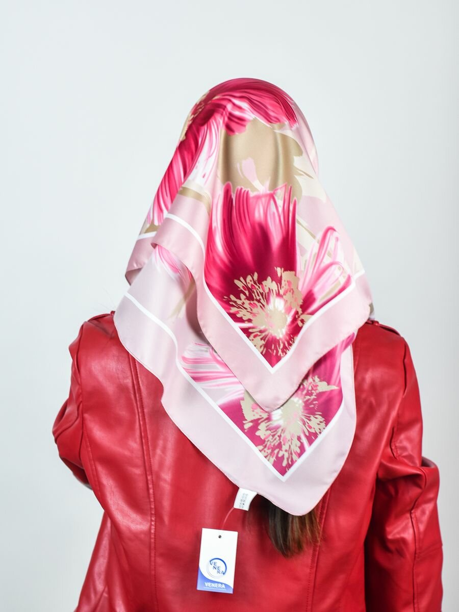 Платок VENERA для женщин,90х90 см, бежевый, розовый, бордовый информация: