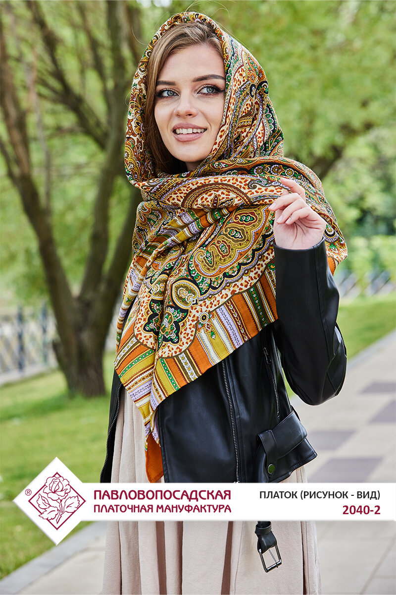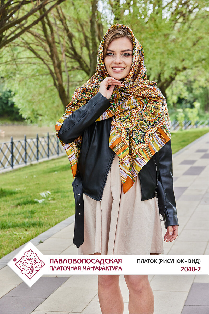 10 цен на Платок Павловопосадская платочная мануфактура для женщин,125х125 см, коричневый, оранжевый, зеленый