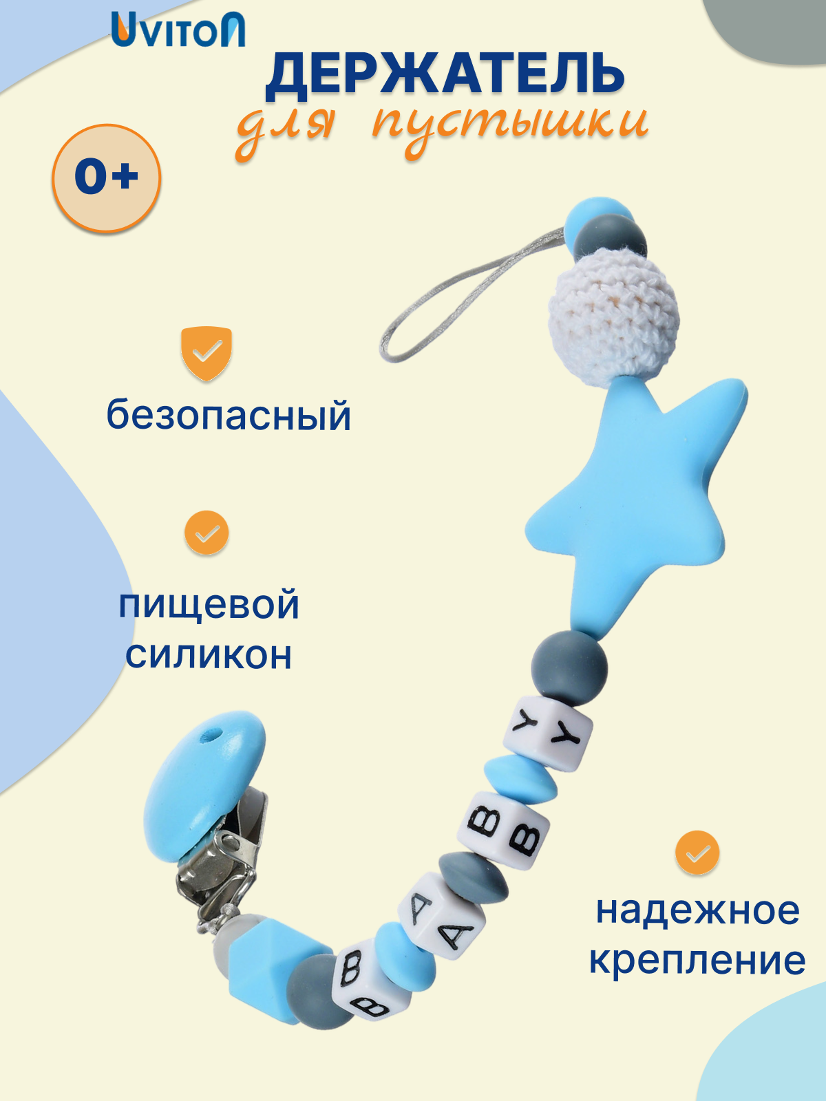 Силиконовый держатель для пустышки и соски Звездочка от бренда Uviton информация: